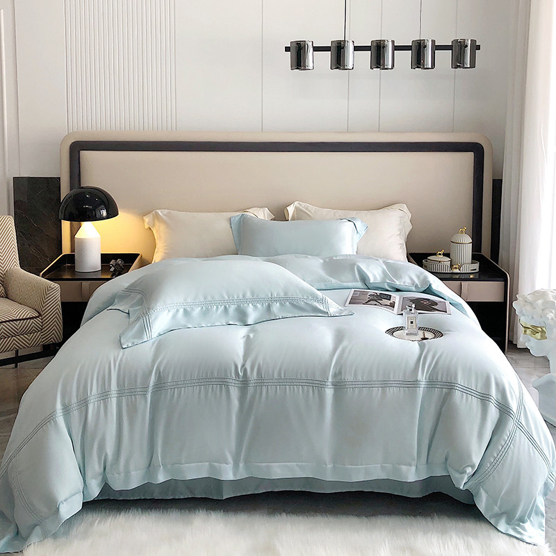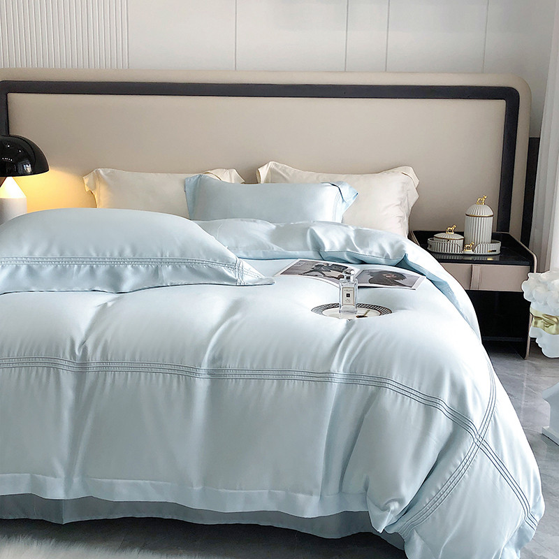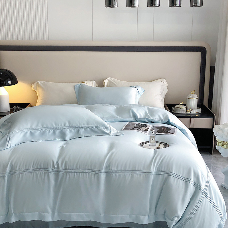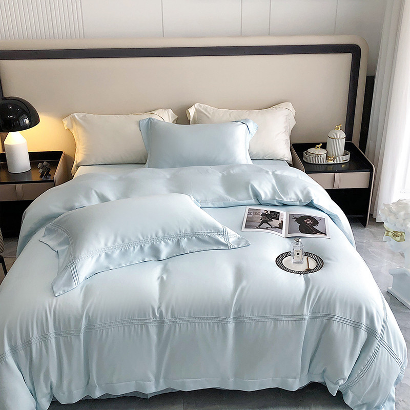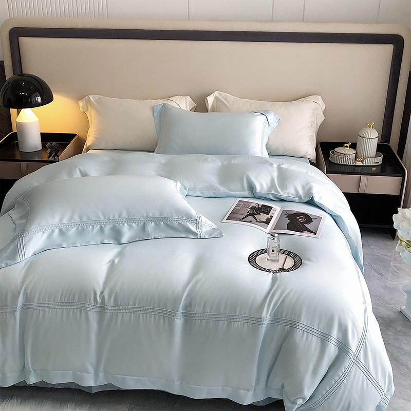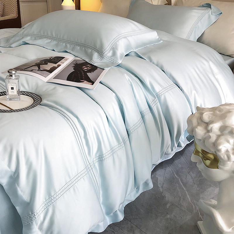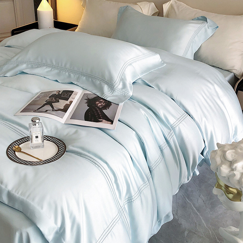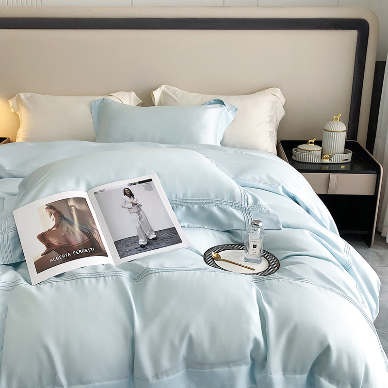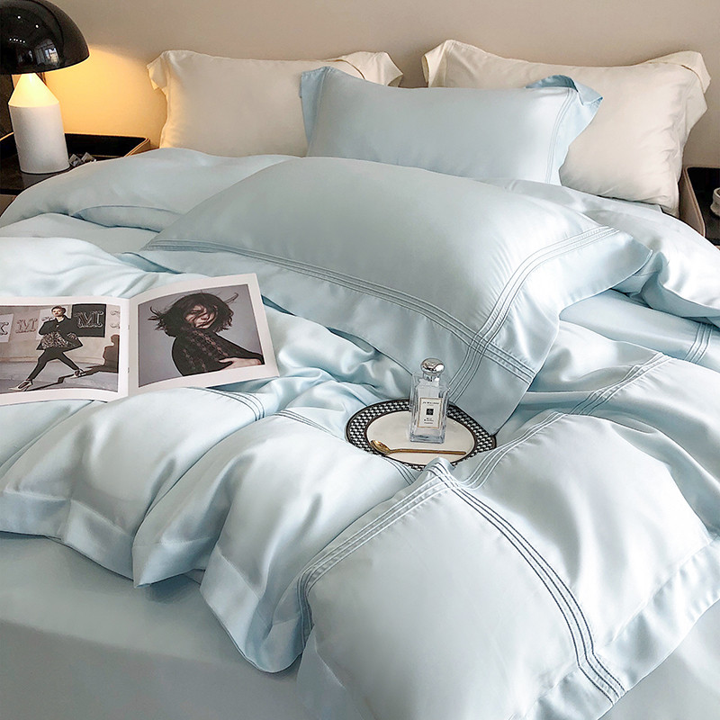 馨蕊家居 2022新款80S兰精天丝高定四件套简淡海蓝