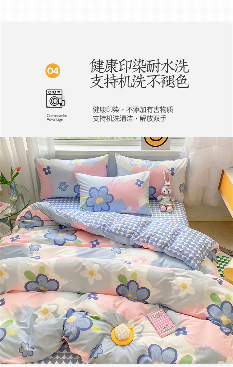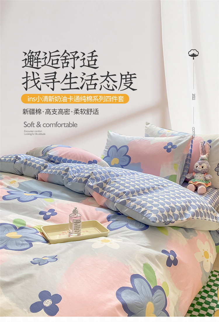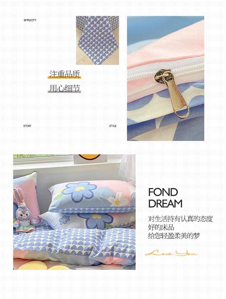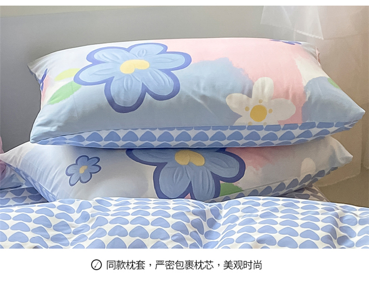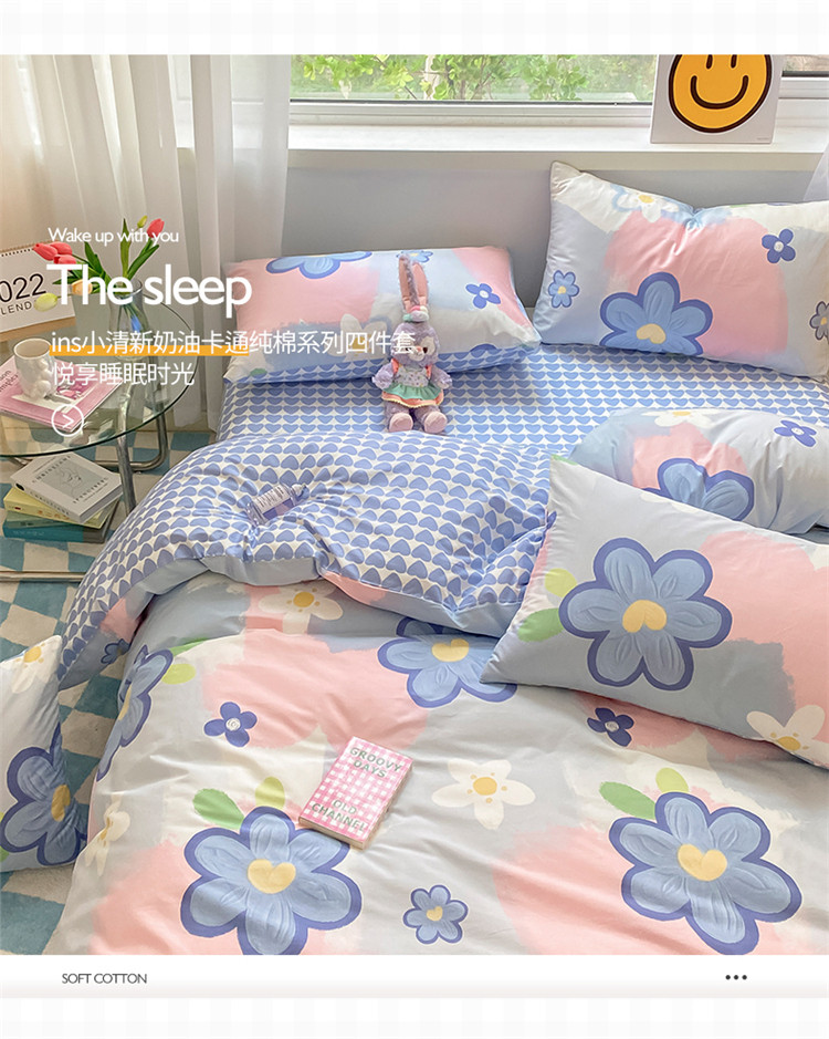 商品名称:桃子家居 2022新款ins小清新奶油卡通纯棉系列四件套 蓝心奶油花