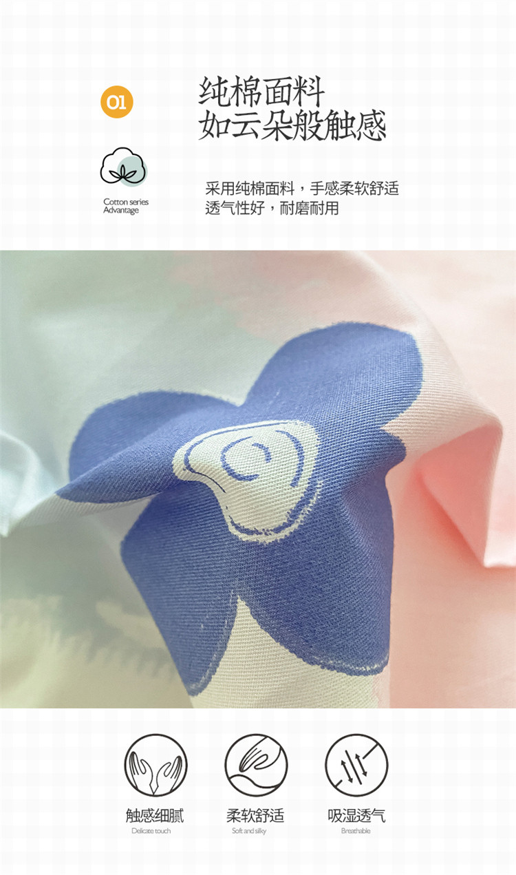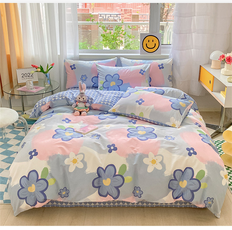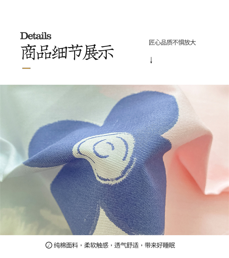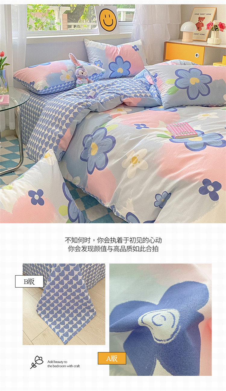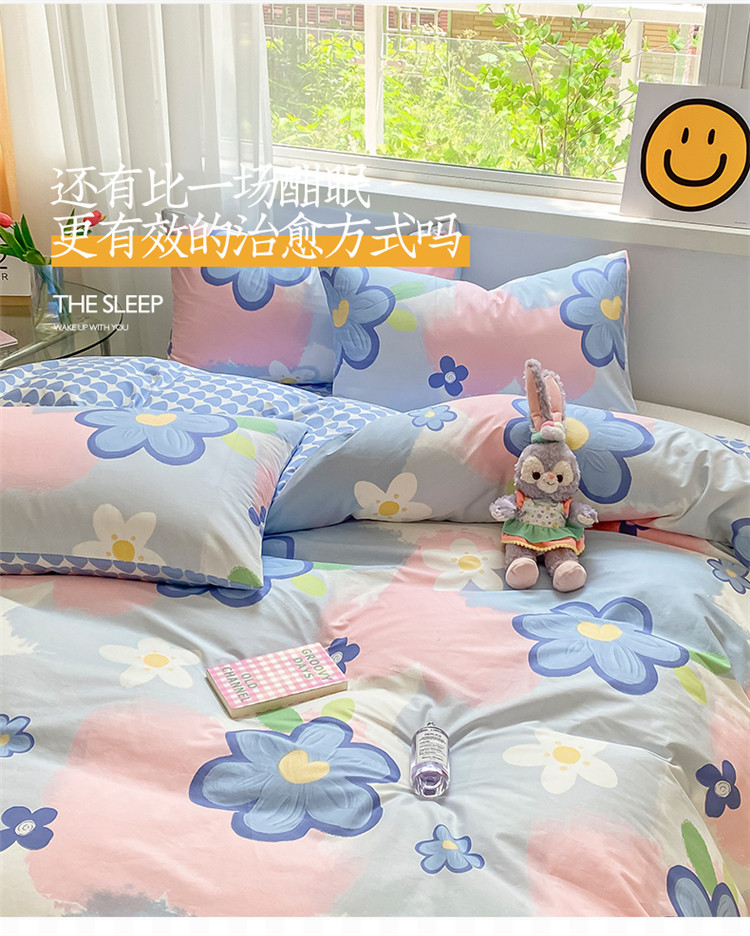 商品名称:桃子家居 2022新款ins小清新奶油卡通纯棉系列四件套 蓝心奶油花