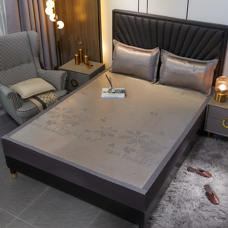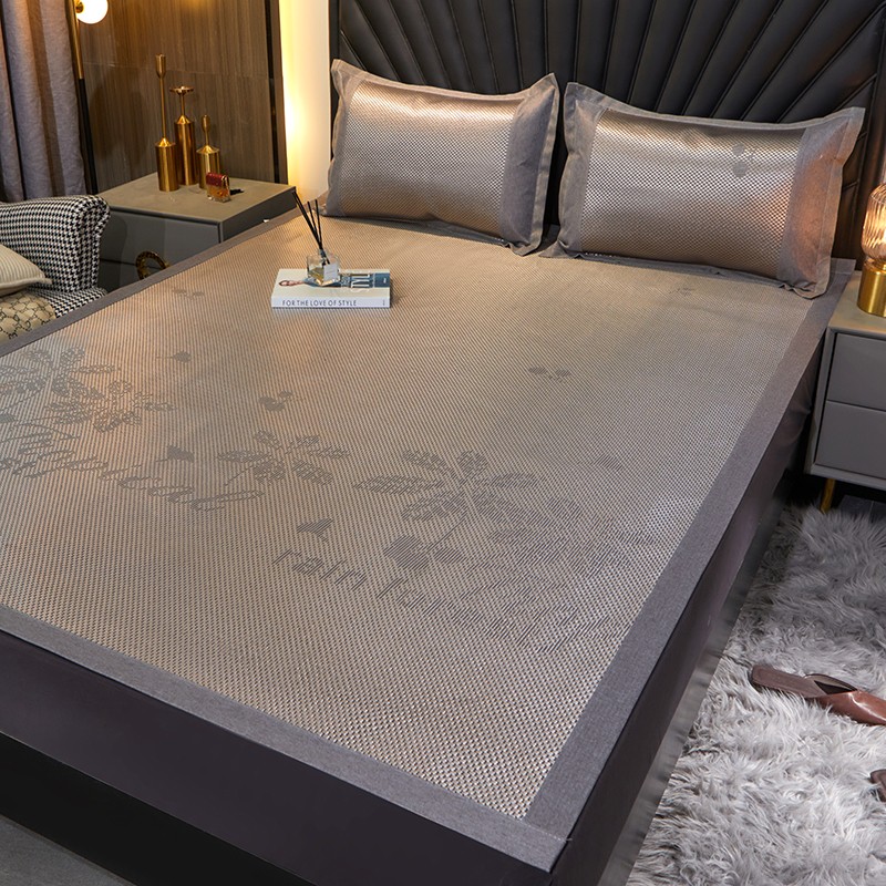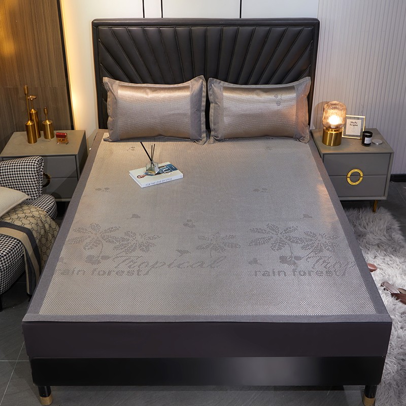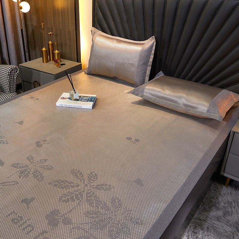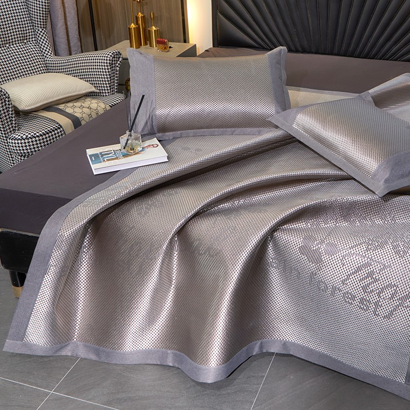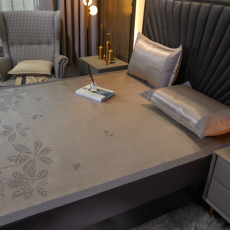 盈超 2023新款亚光冰藤提花冰藤席三件套 六叶草银灰