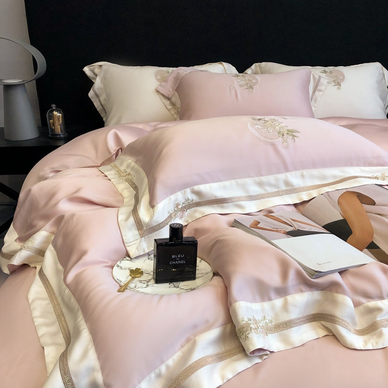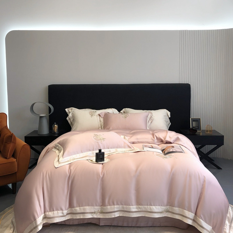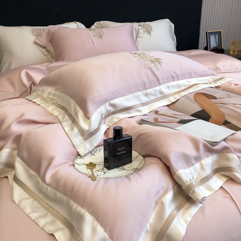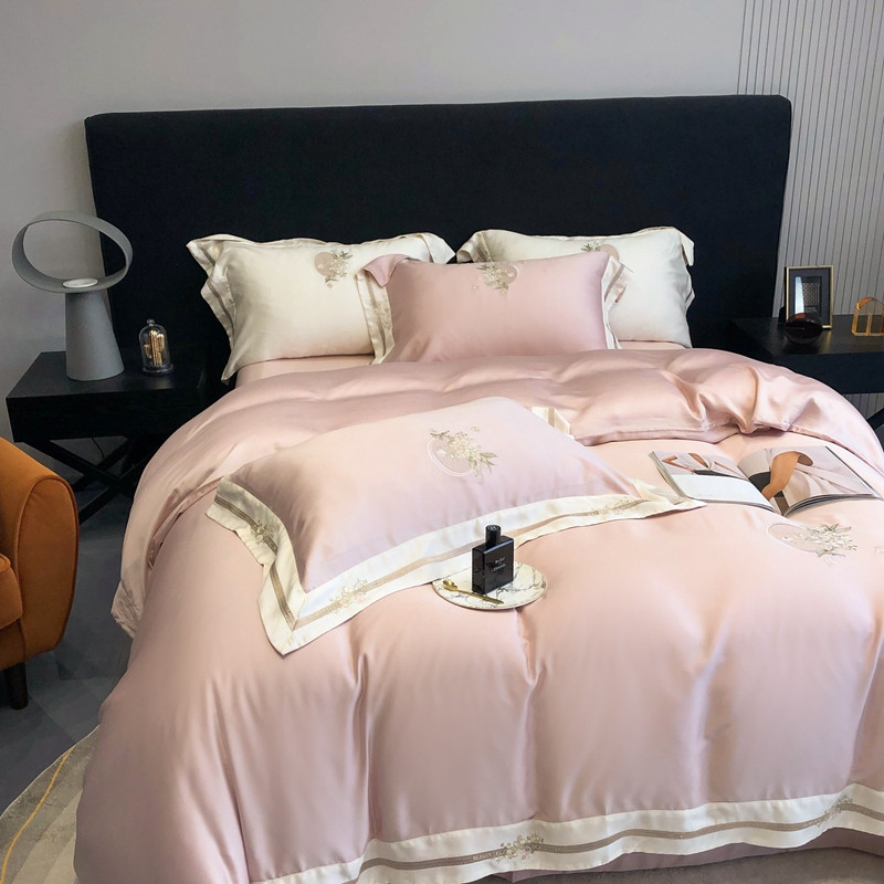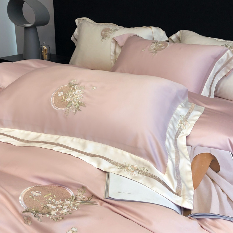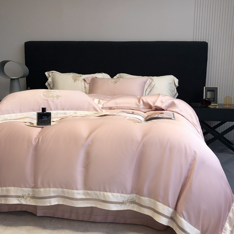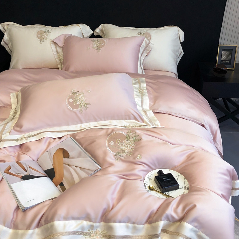 馨蕊 2022秋冬新品100支高定全棉刺绣四件套-蜜恋 蜜恋-豆蔻粉