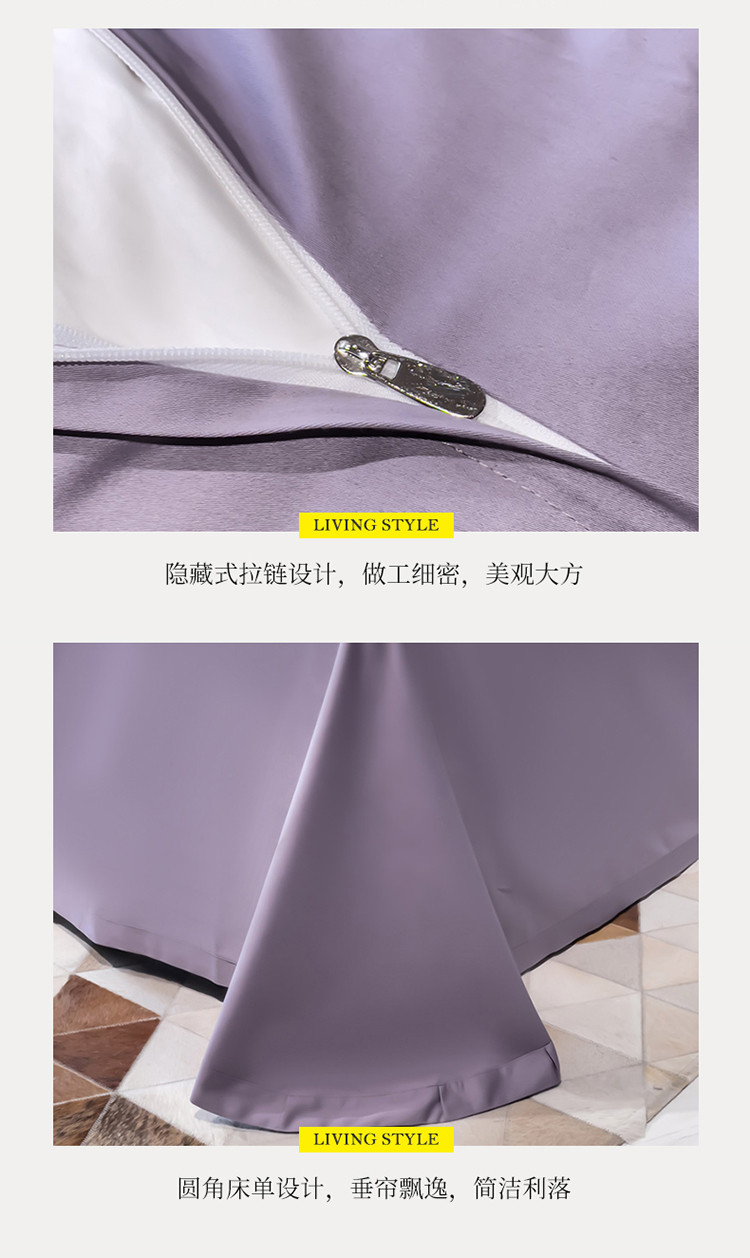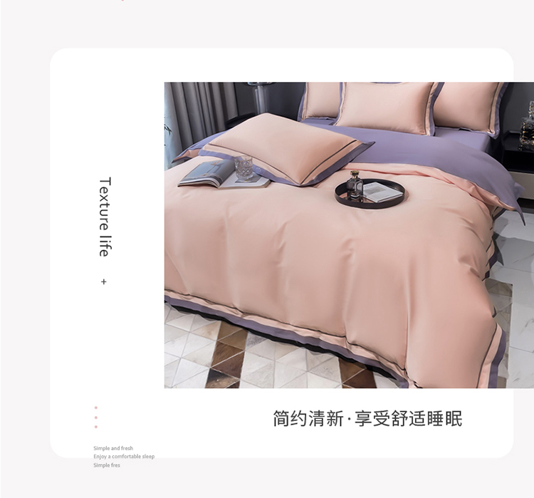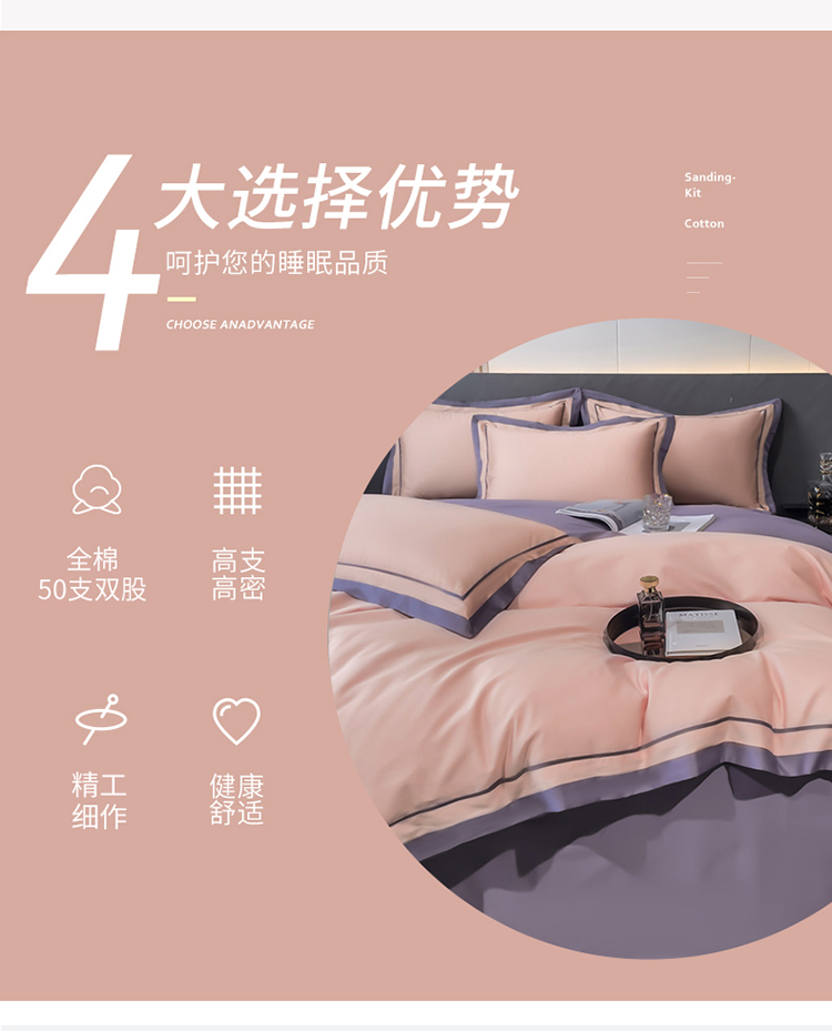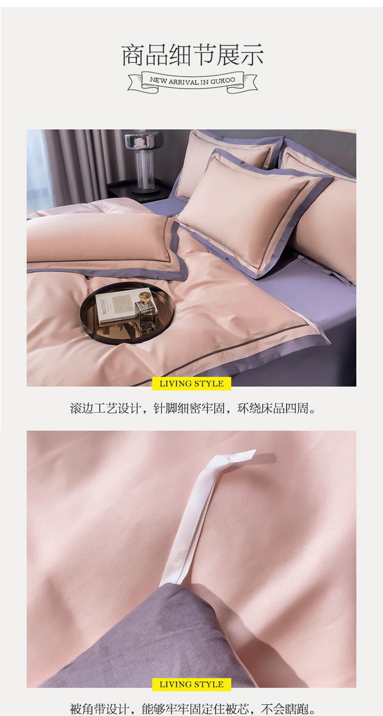 商品名称:好阁 2023新款100支长绒棉双股全棉极简双拼四件套 粉紫