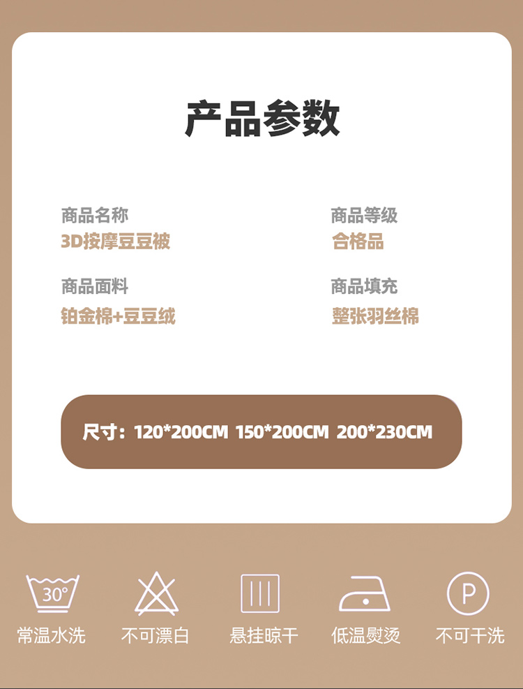 商品名称:澳洲羽 2024新款3D按摩豆豆被 花语-豆沙