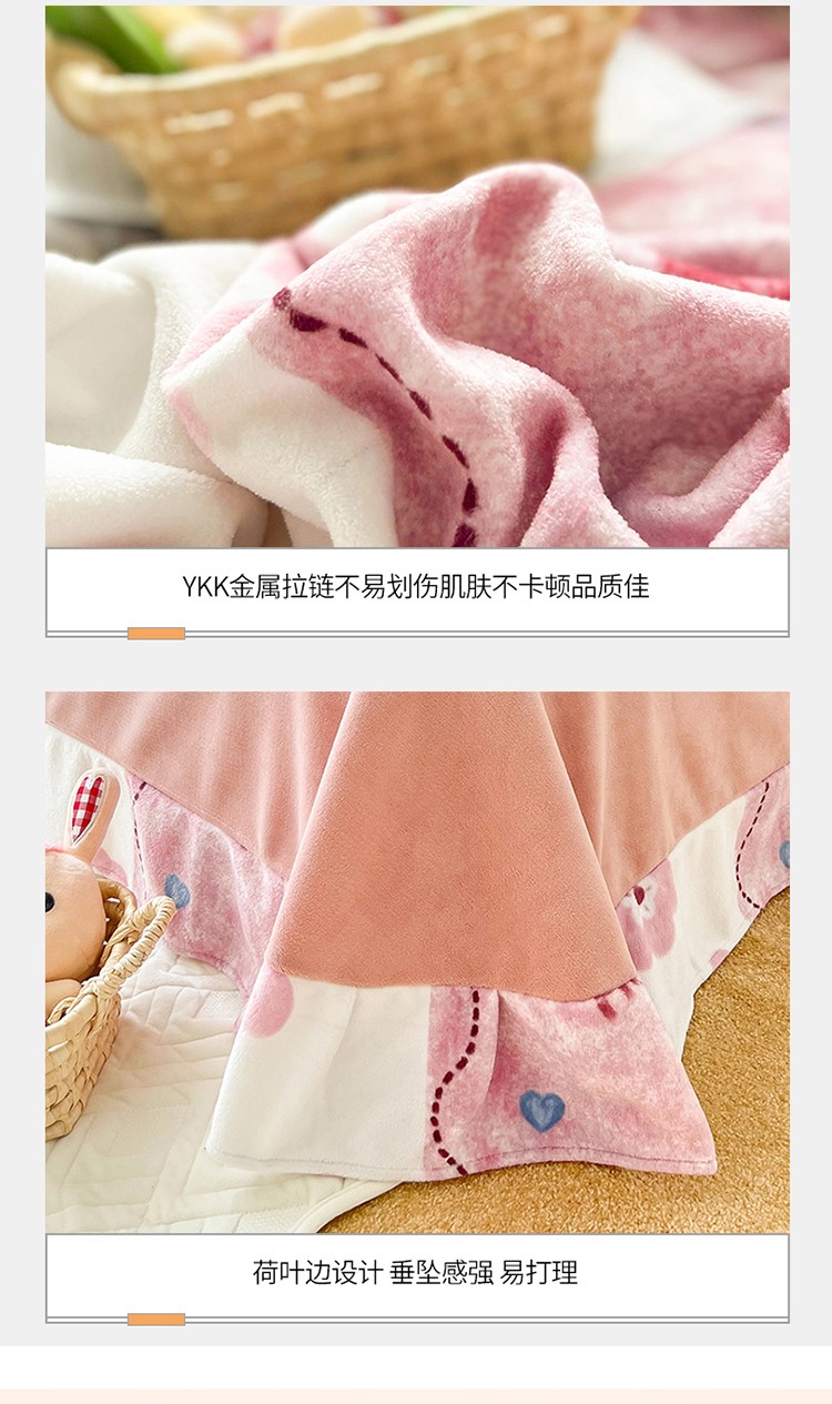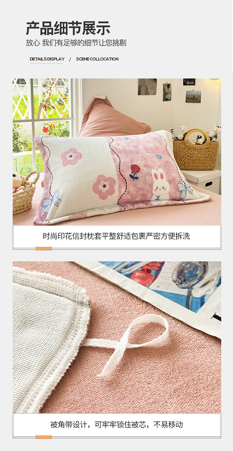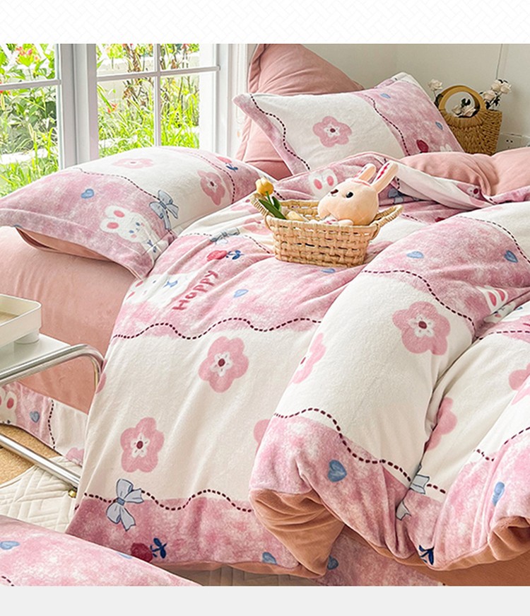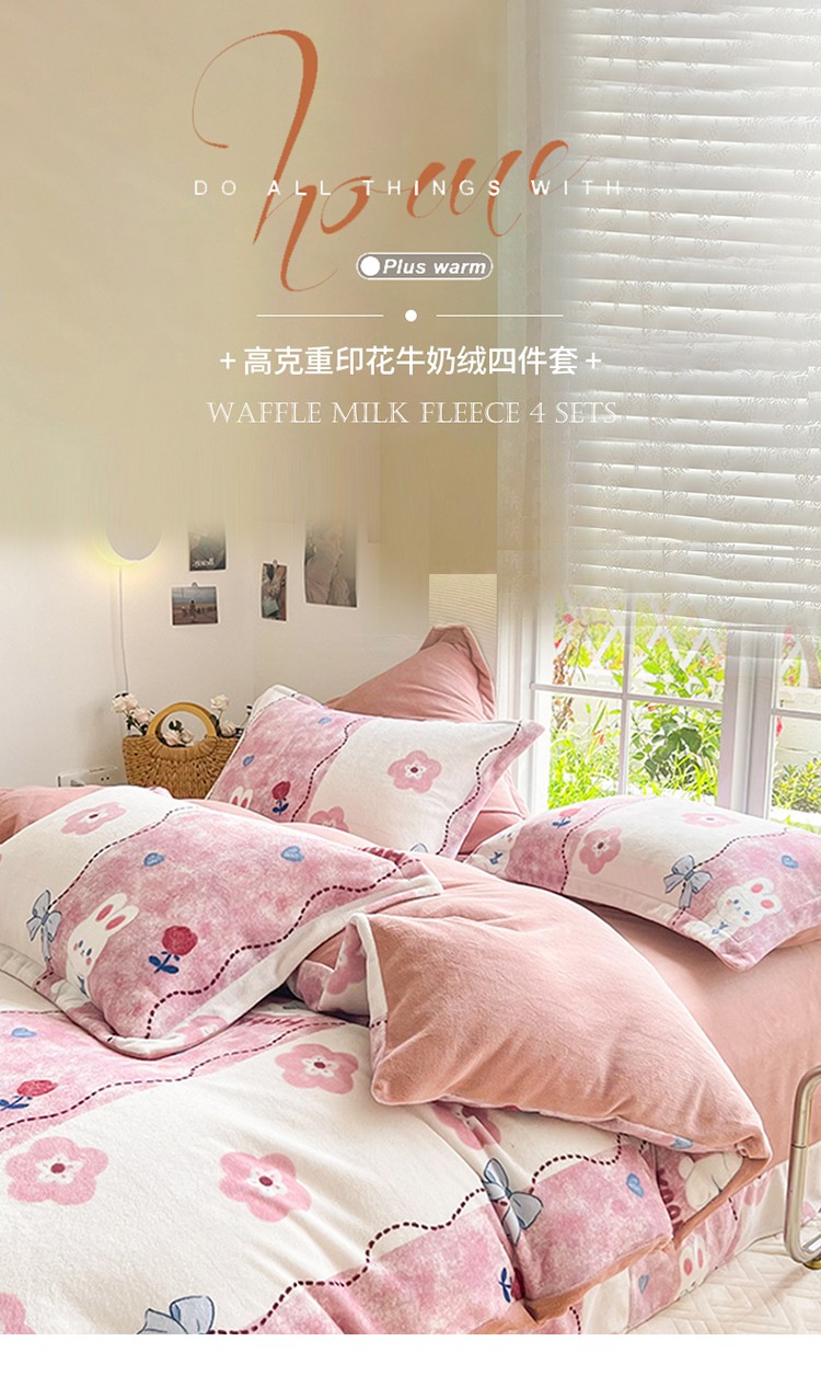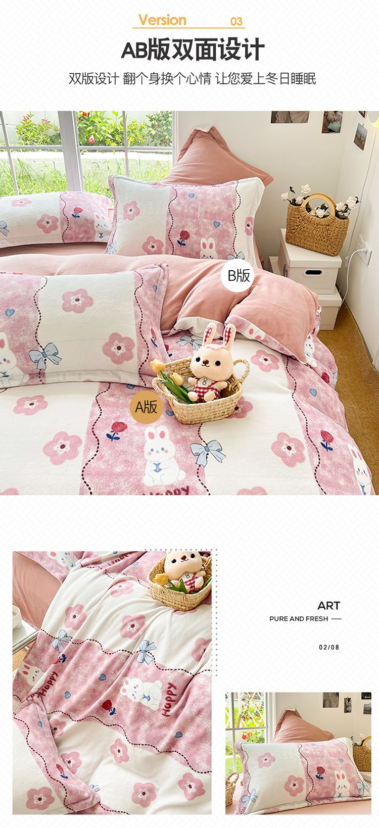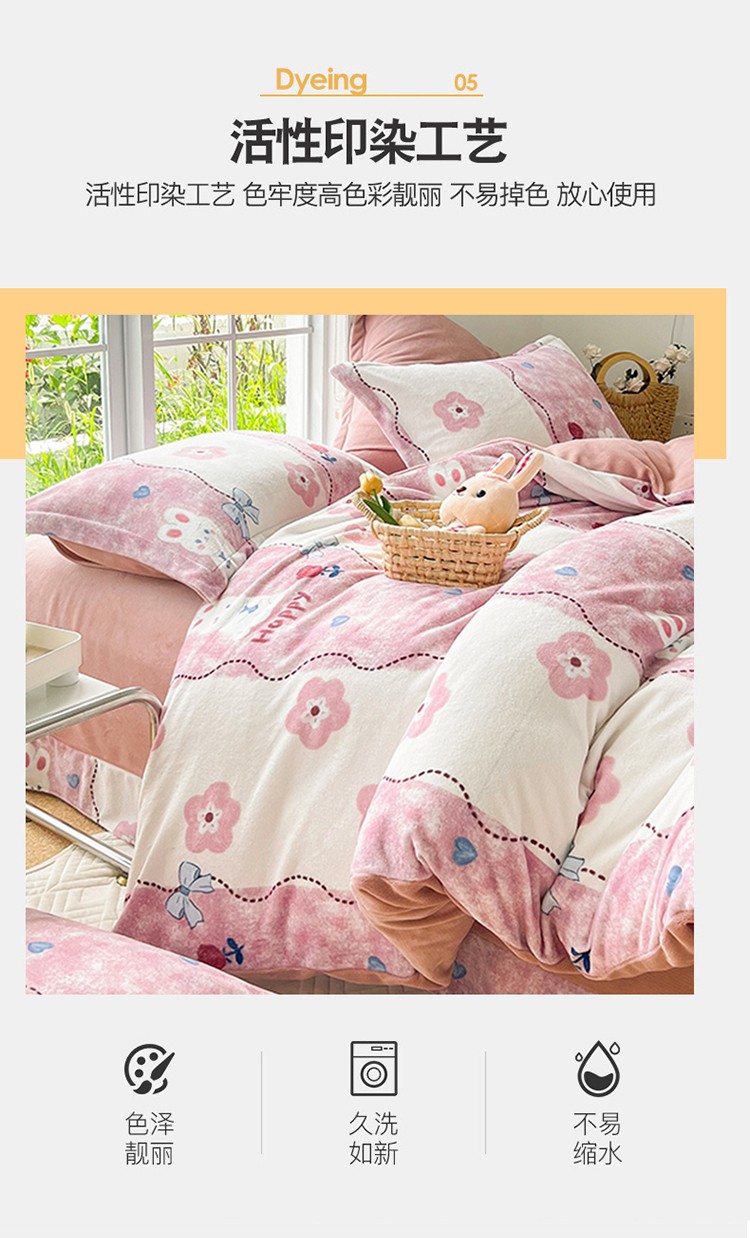 呗旺鹿 2022年印花小清新加厚保暖牛奶绒四件套直播 兔宝宝