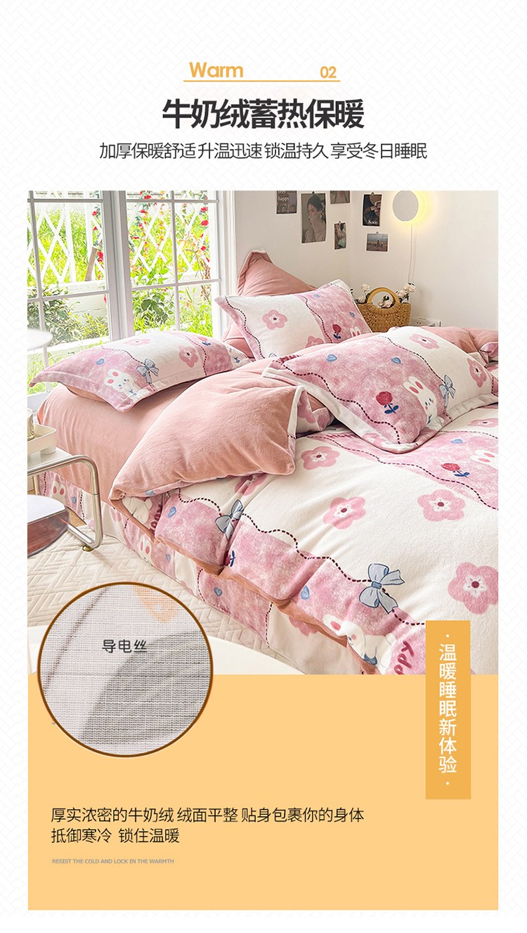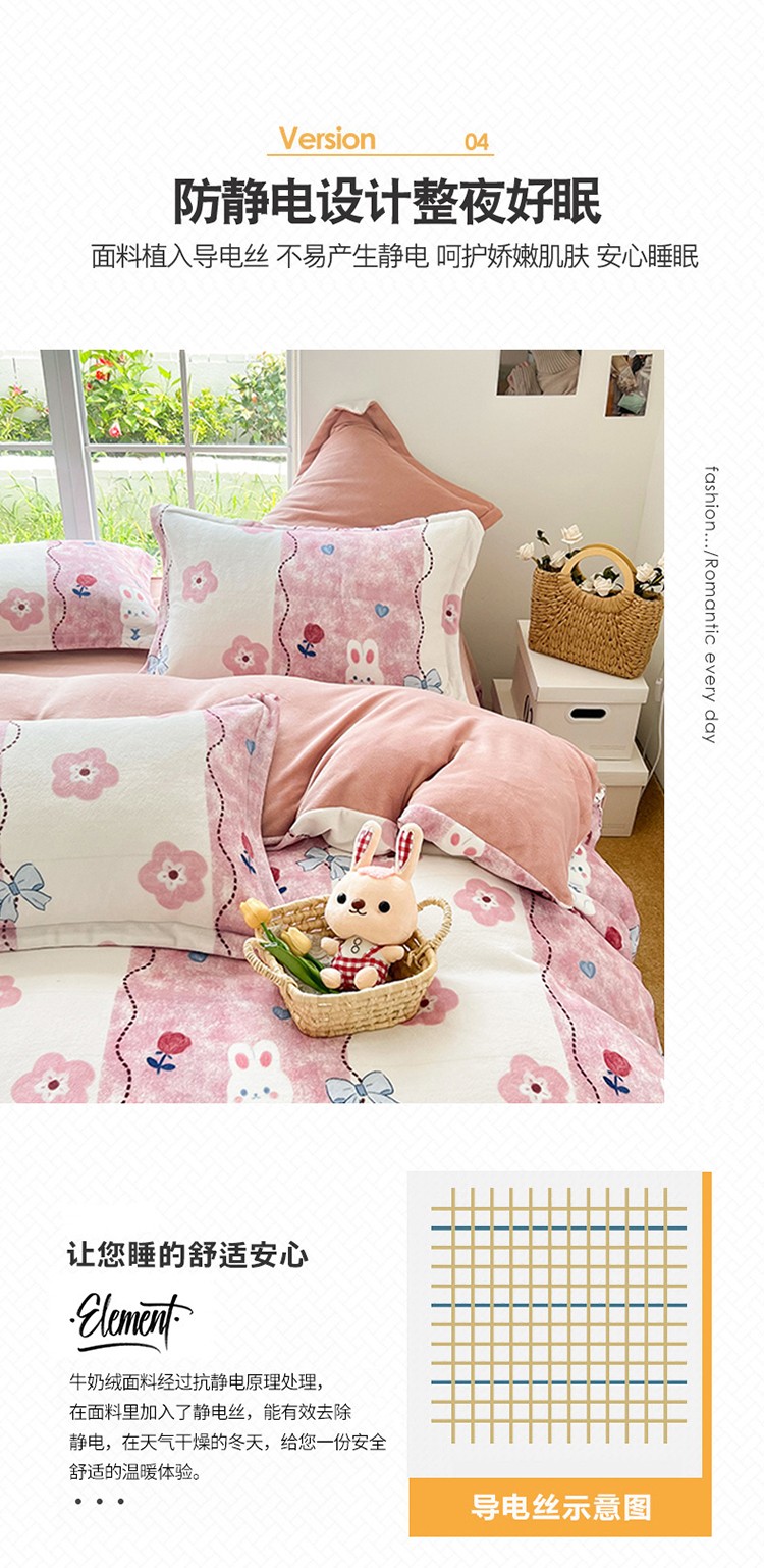 商品名称:呗旺鹿 2022年印花小清新加厚保暖牛奶绒四件套直播 兔宝宝