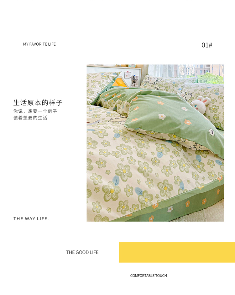 商品名称:瑞莱 2023秋季新款全棉印花四件套-花卉系列 春华