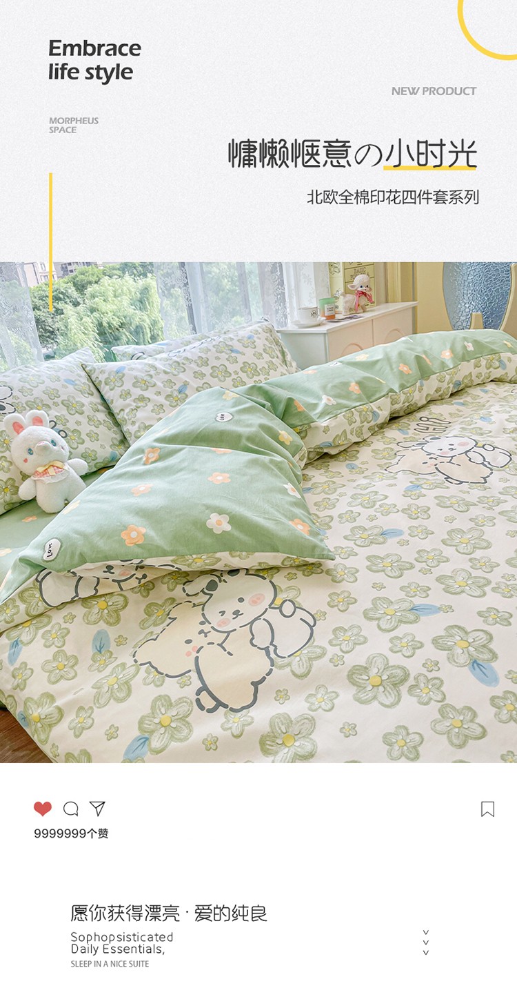 (总)瑞莱 2026春季新款全棉纯棉印花小清新萌趣系列四件套,小懒猫,KT猫,可爱猫咪,蓝花兔,路灯影院,莓果小萌,帕丁顿兔兔,企鹅家族,趣味涂鸦,甜梦日记,甜梦小精灵,甜心KT,小镇漫游记