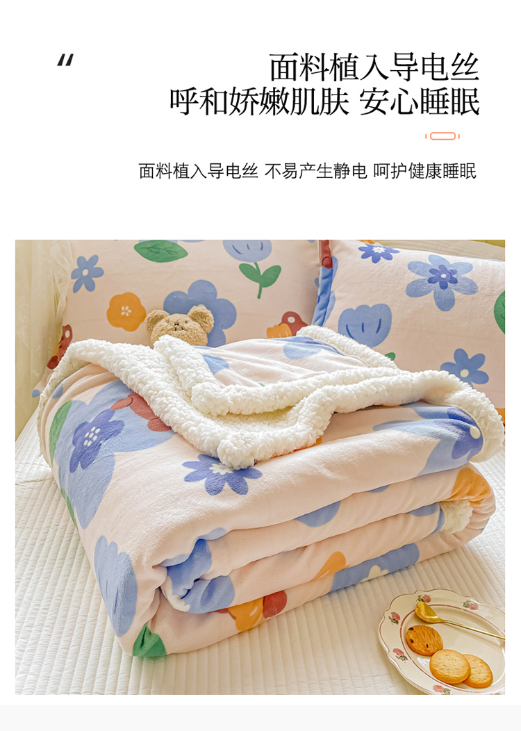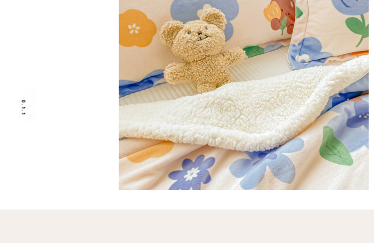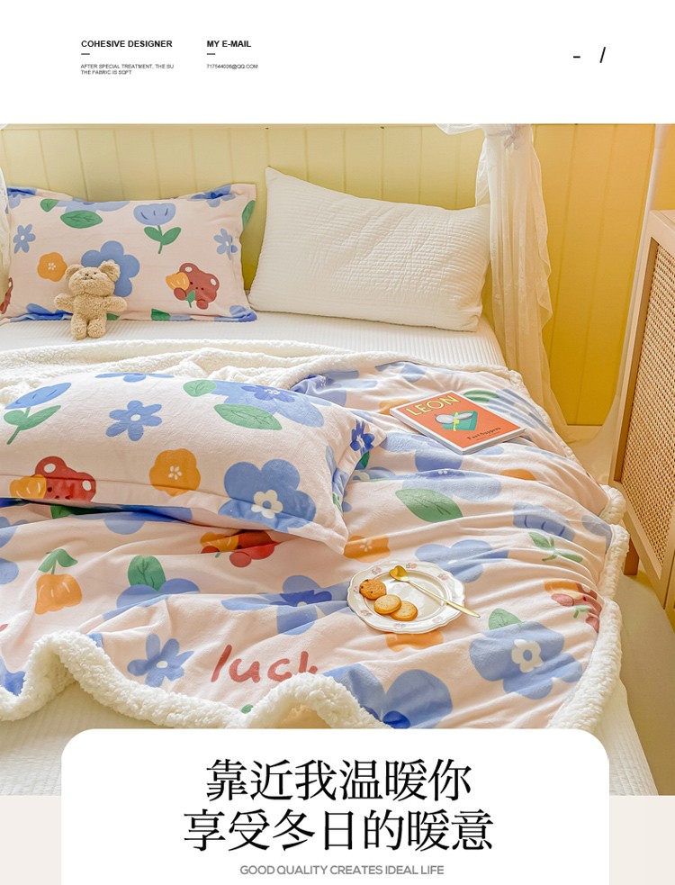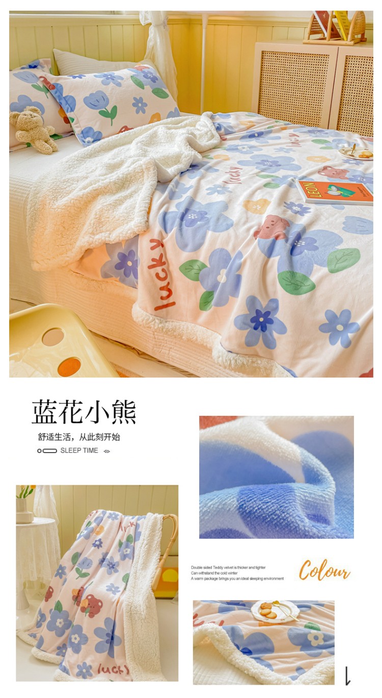 商品名称:沐慕 2022新款牛奶绒拼羊羔绒毛毯 蓝花小熊