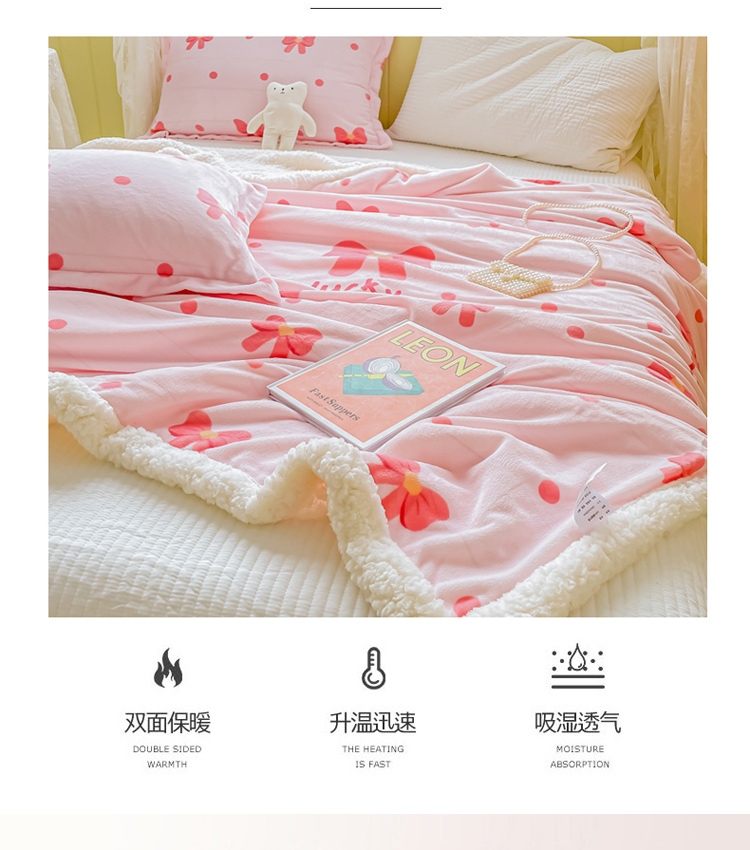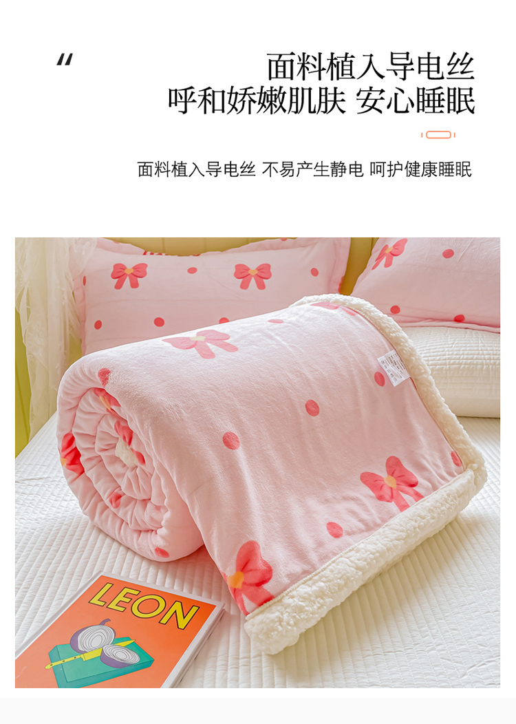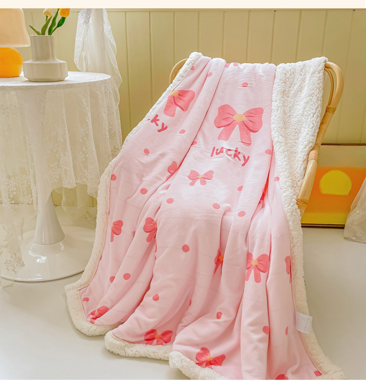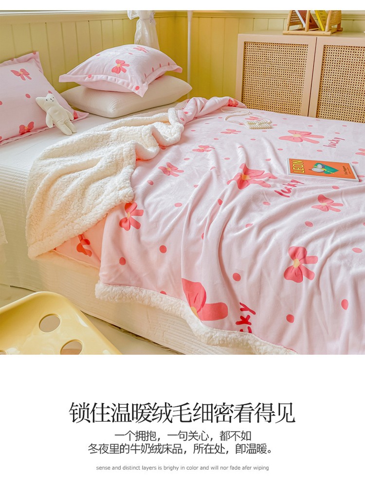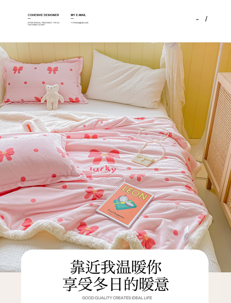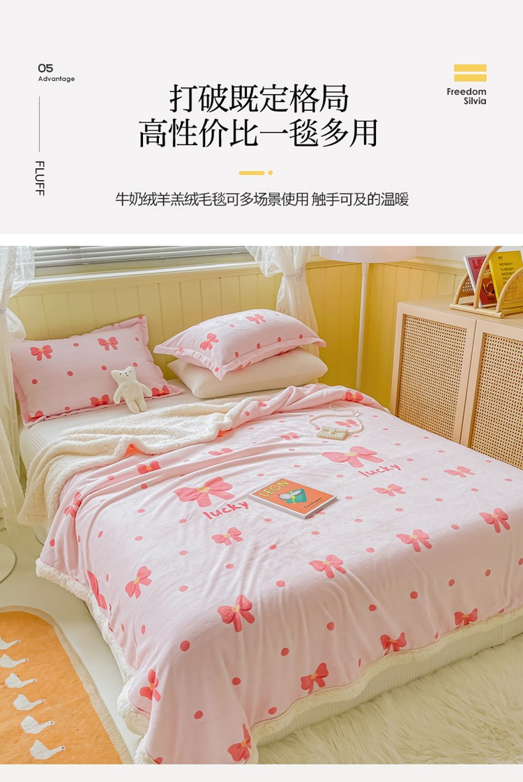商品名称:沐慕 2022新款牛奶绒拼羊羔绒毛毯 幸运蝴蝶结