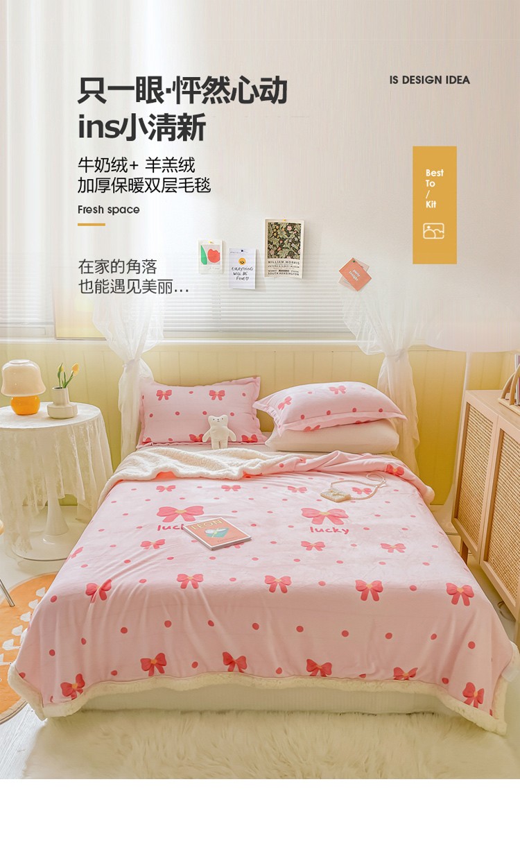 沐慕 2022新款牛奶绒拼羊羔绒毛毯 幸运蝴蝶结