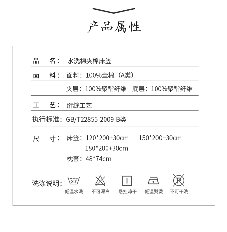 商品名称:席世家 2022新款A类水洗棉夹棉床笠 斯诺克