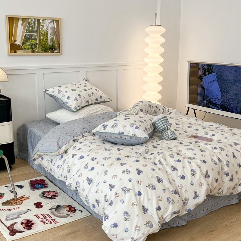 (总)昔可 2023新款学生季全棉四件套-小花系列,柏林少女,花野迷踪,少女粉草莓,微熏海棠,夏茉莉,小兰花,小小的樱桃,紫色果果,紫色葡萄