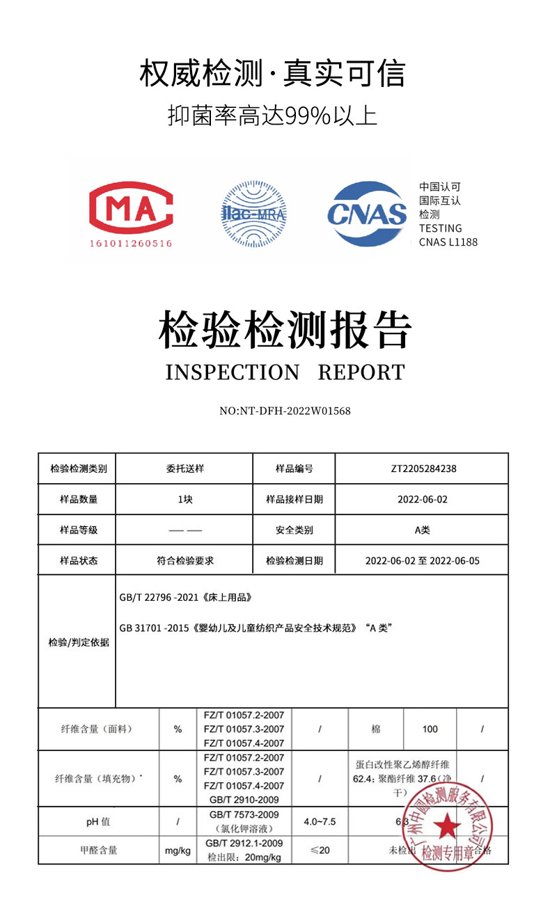 填充纤维种类: 大豆蛋白改性聚酯纤维