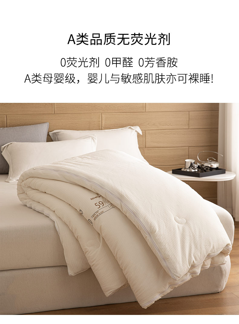 (总)A+爱家 2025新款彩丝提花双宫桑蚕丝被芯桑蚕丝空调被,白色