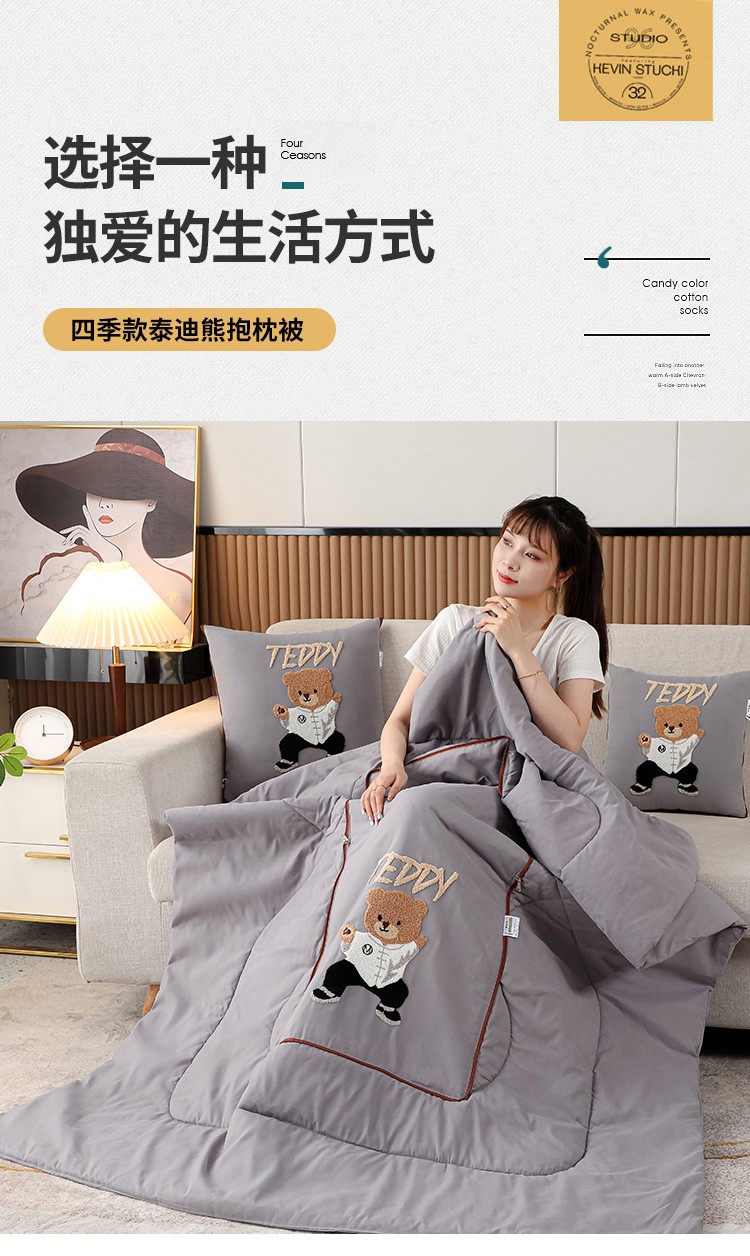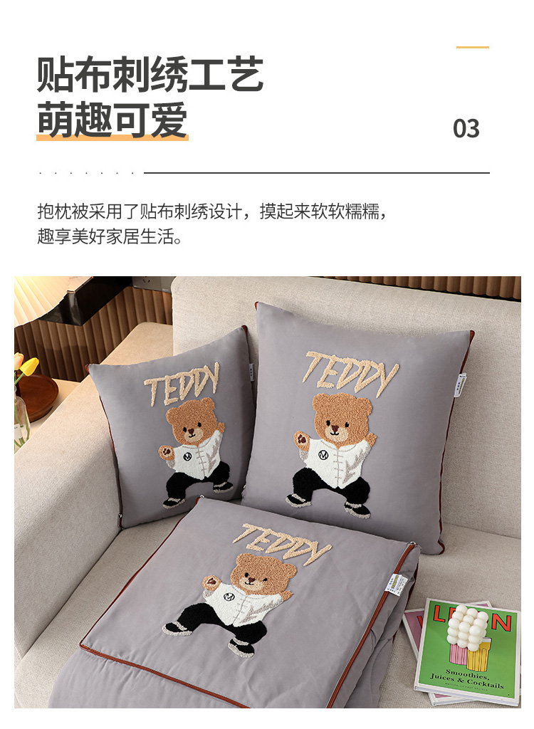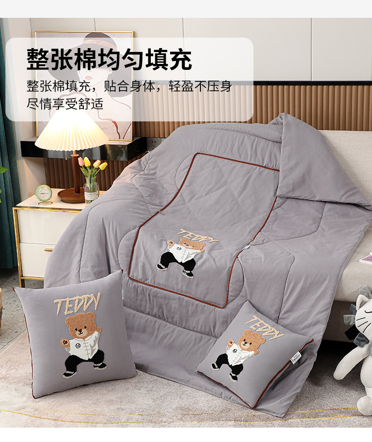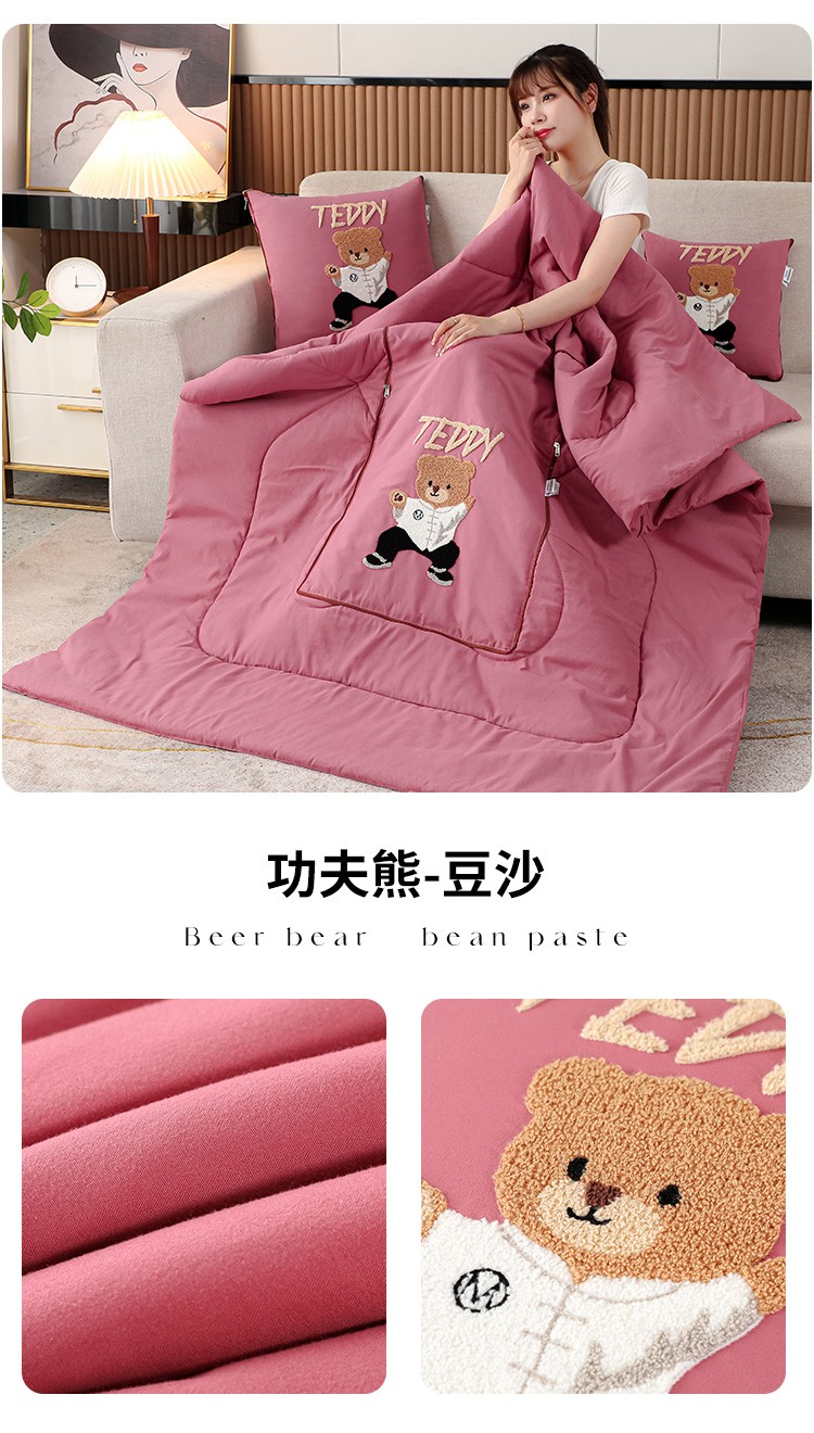 (总)宝马家纺(原梦童画) 2024新款泰迪熊毛巾绣联名款减压式加厚抱枕毯,豆沙粉,粉色,黑色,灰色,绿色,柠檬黄,天空蓝