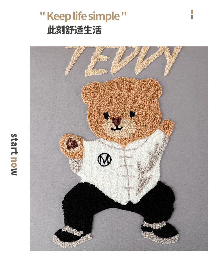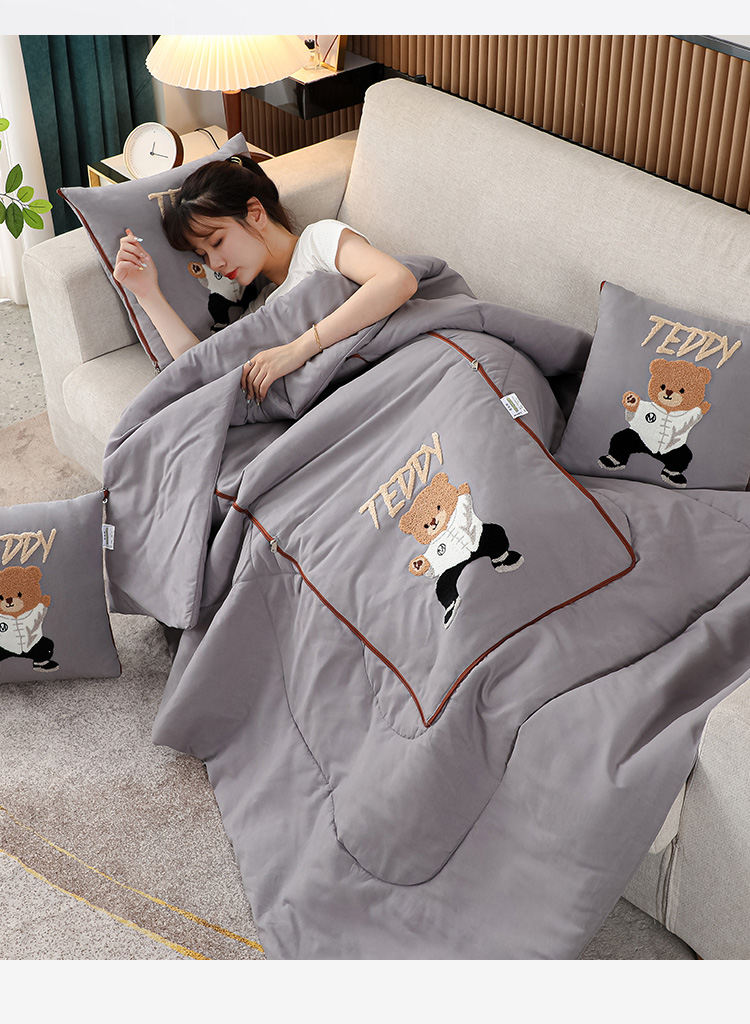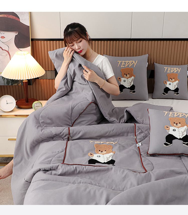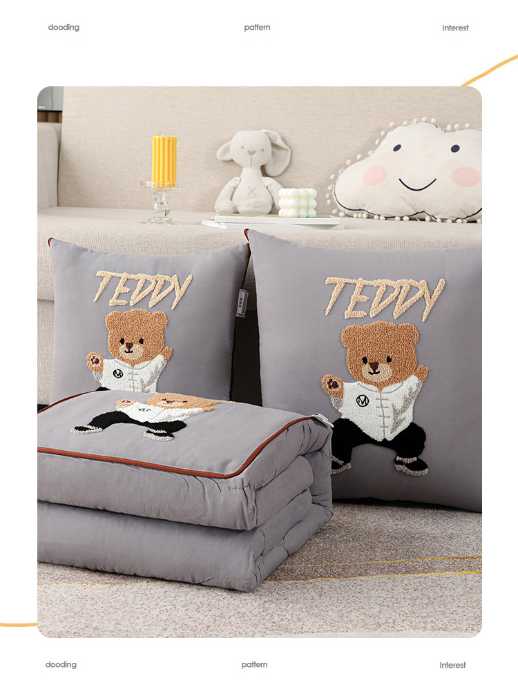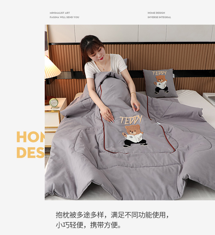 (总)宝马家纺(原梦童画) 2024新款泰迪熊毛巾绣联名款减压式加厚抱枕毯,豆沙粉,粉色,黑色,灰色,绿色,柠檬黄,天空蓝