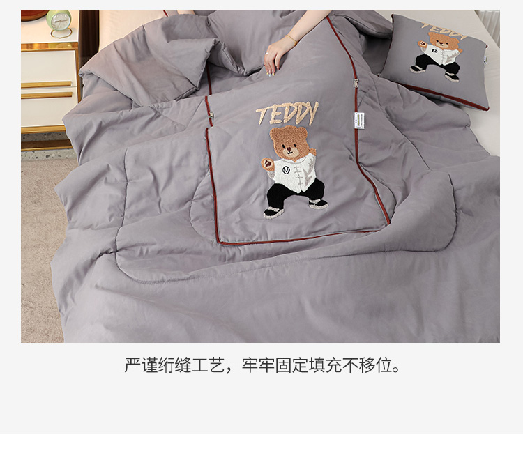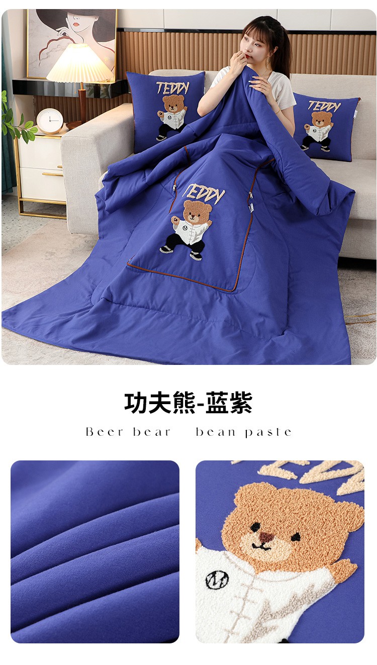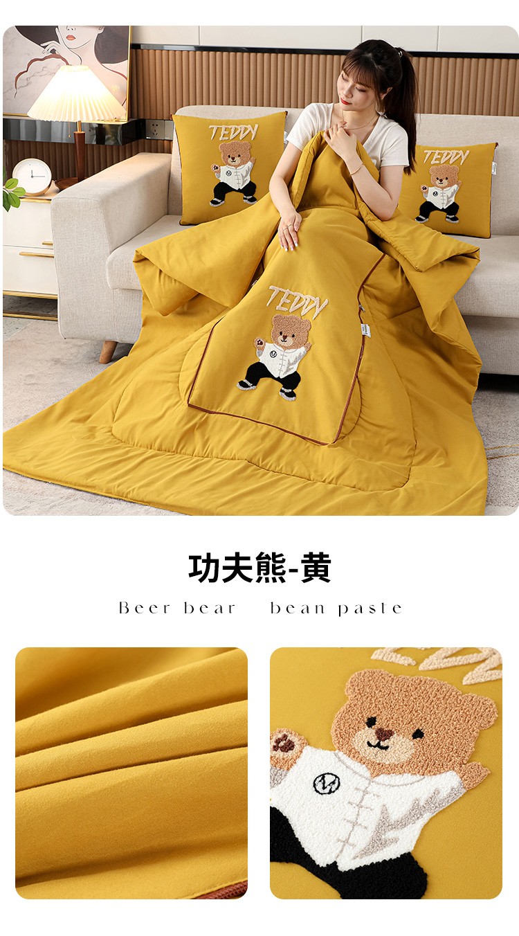 商品名称:(总)宝马家纺2022新款毛巾绣四季款抱枕被-功夫熊