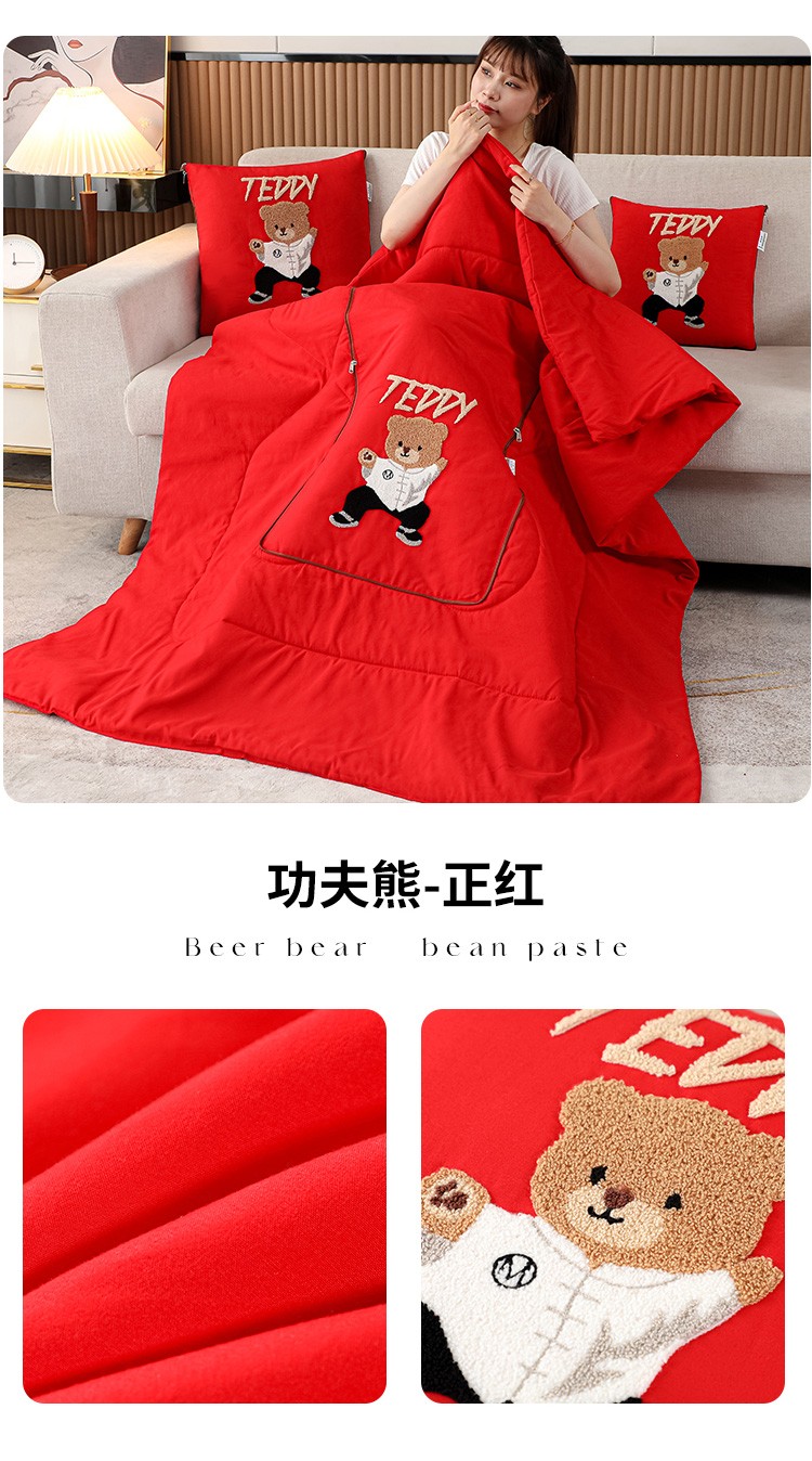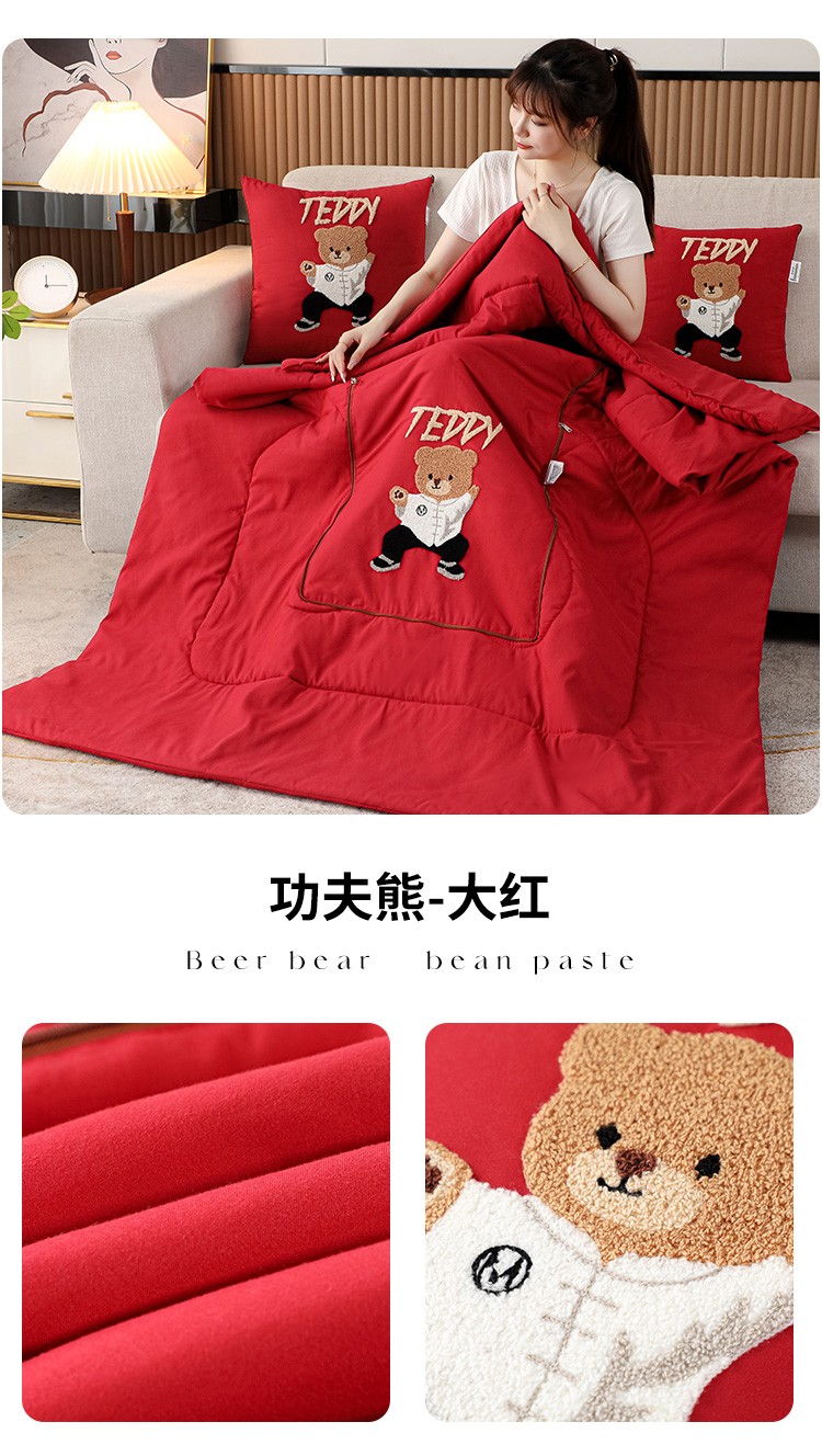 (总)宝马家纺2022新款毛巾绣四季款抱枕被-功夫熊