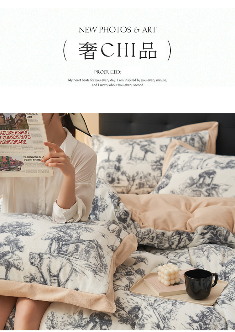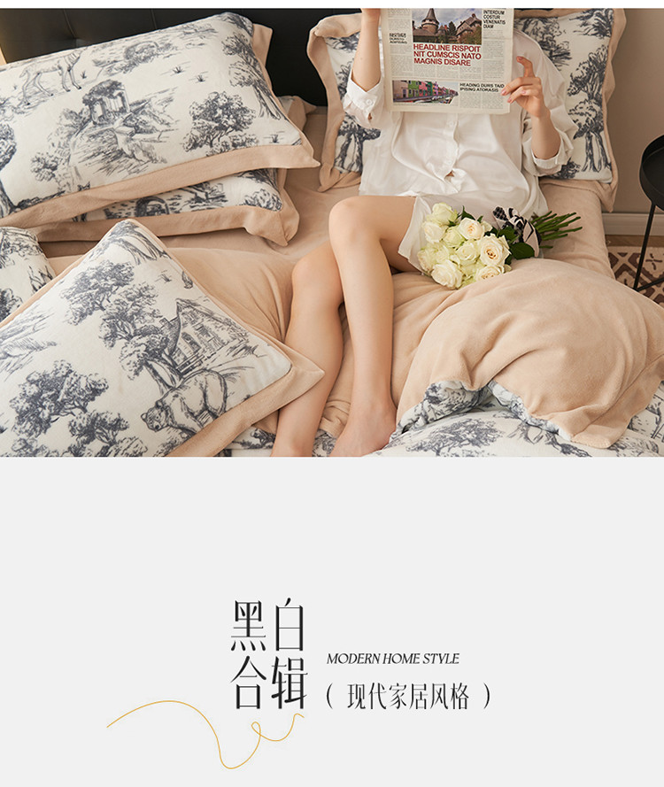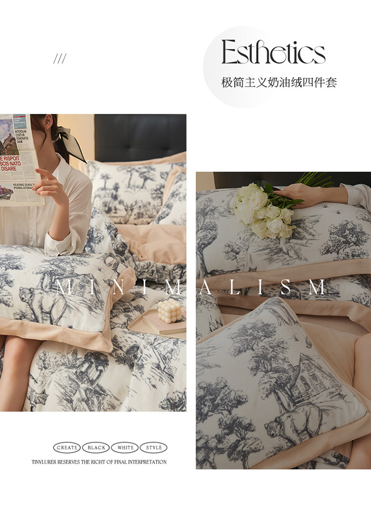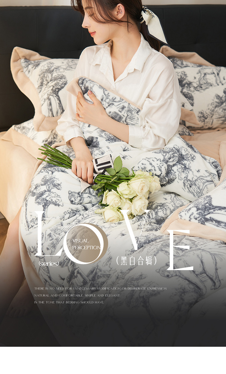 晨曦慵懒风黑白合辑极简主义奶油绒牛奶绒四件套森林城堡加点奶咖