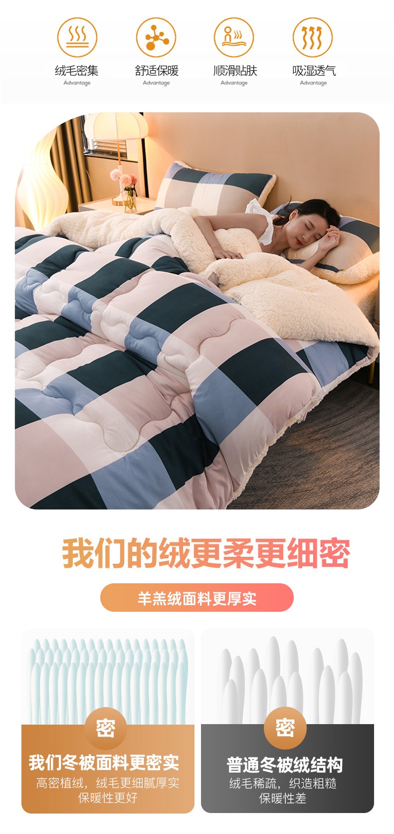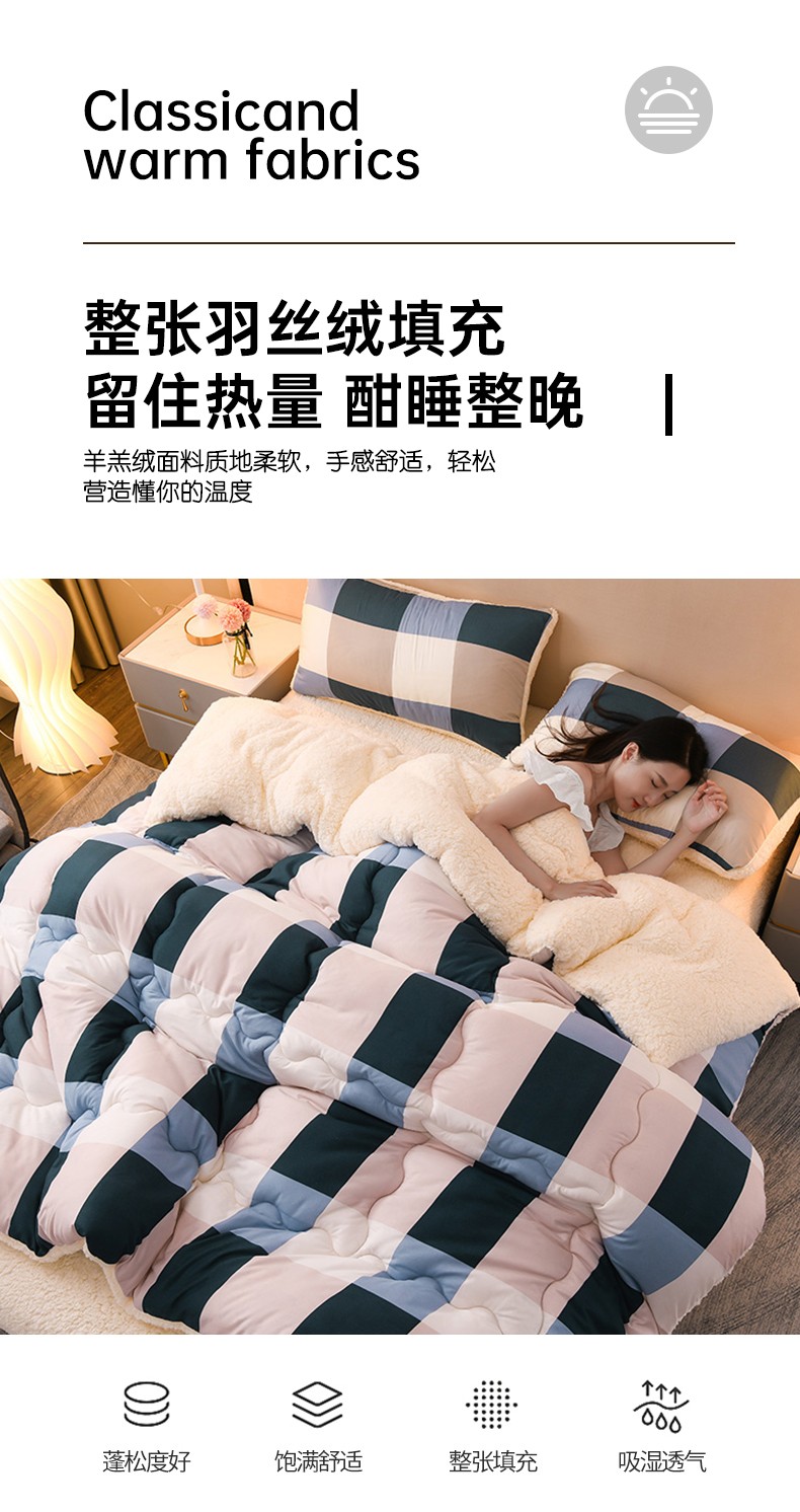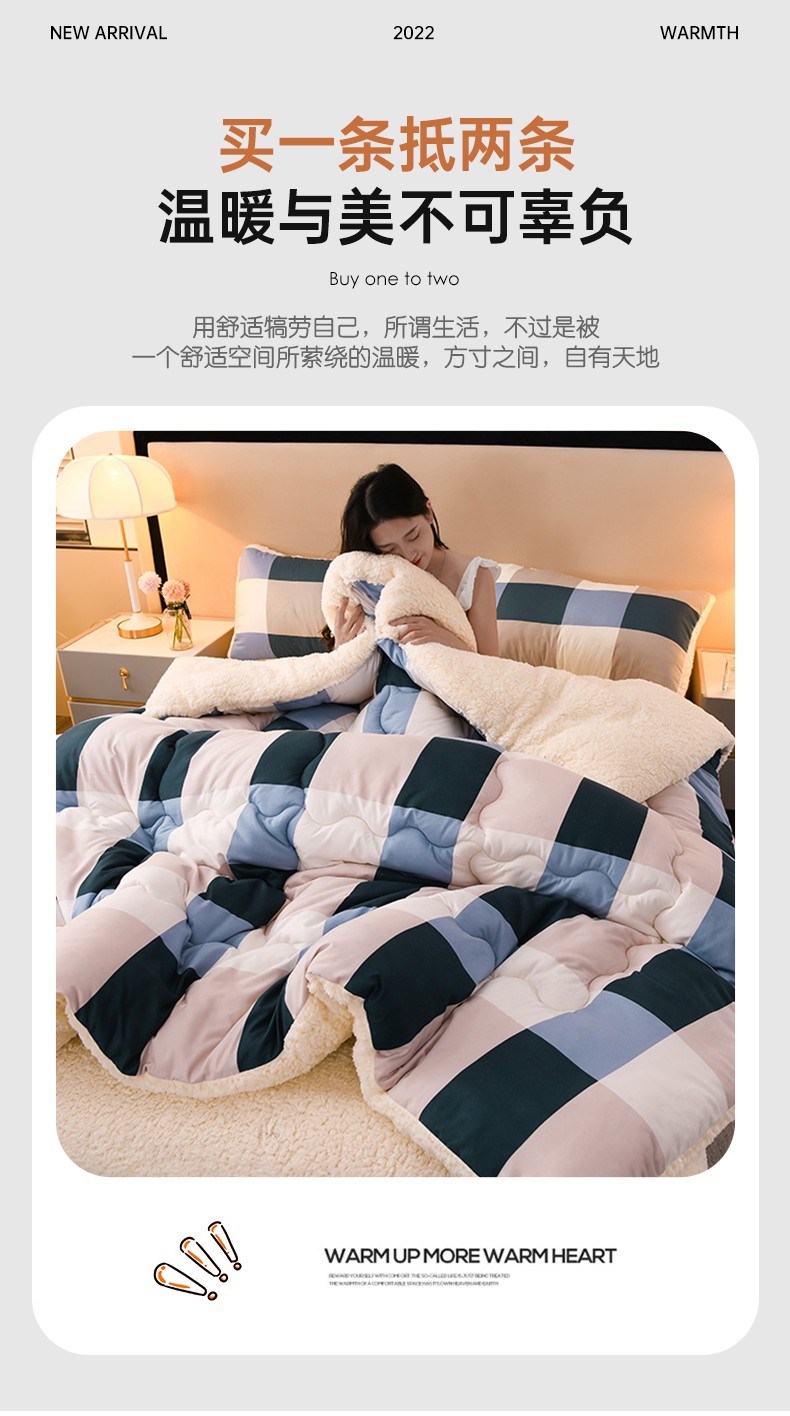 商品名称:圣楚 2024年新款暖心羊羔绒冬被被子被芯直播爆款 杏杏相映