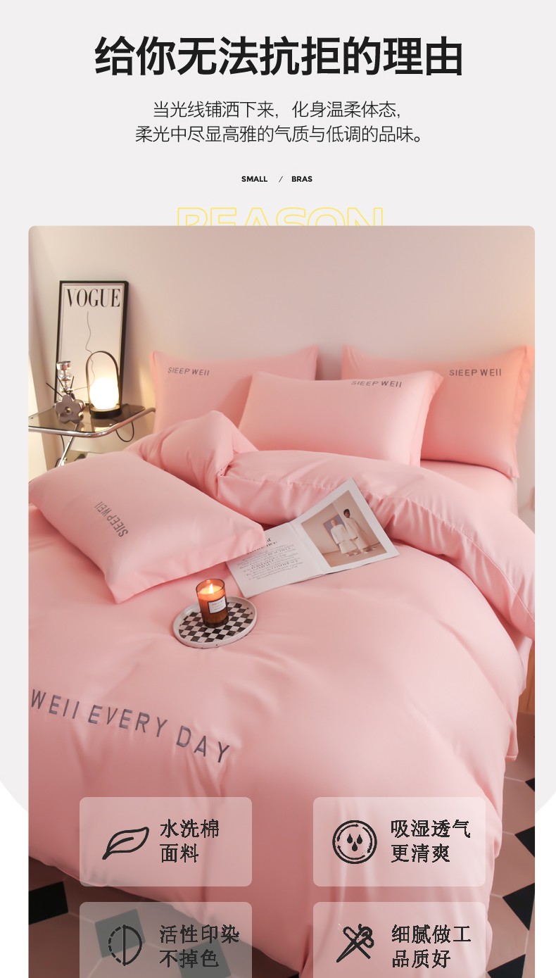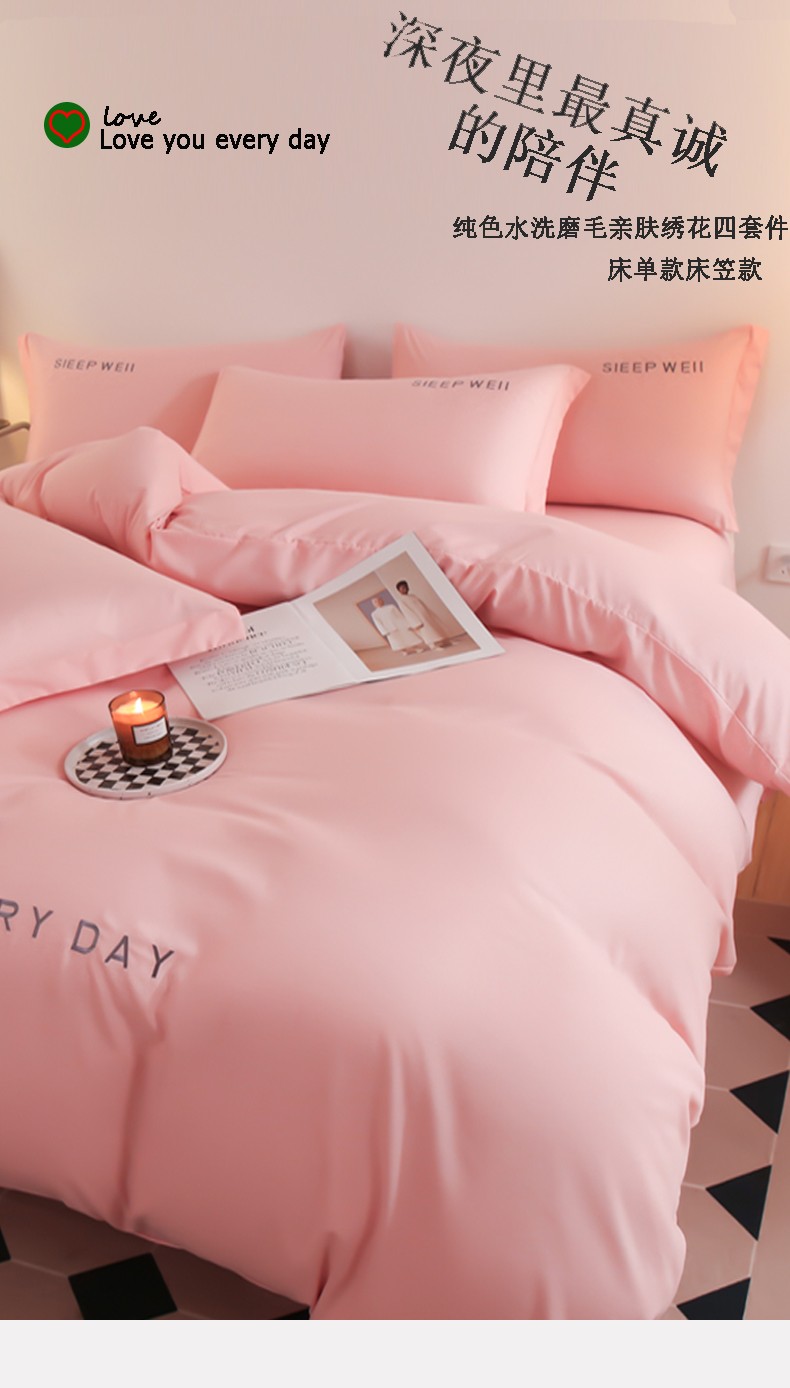 当前位置: 91家纺网 > 商品网购 > 床品套件 > 四件套 > 普通磨毛四件套 > 啊雅家居2025纯色水洗磨毛亲肤绣花床单款床笠款四套件 奶粉