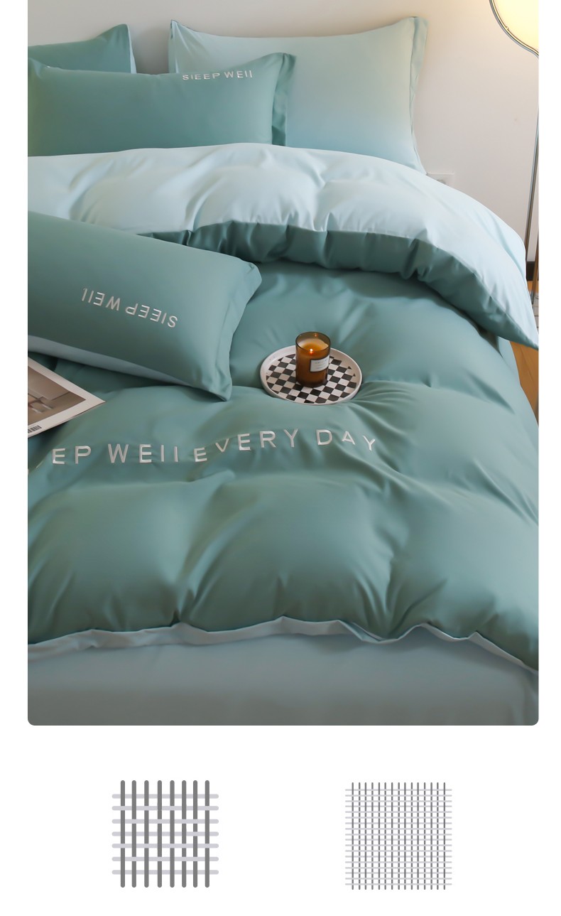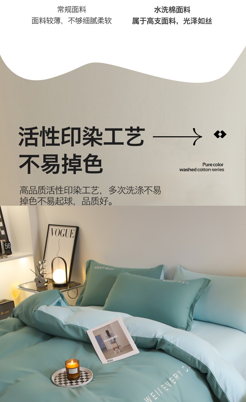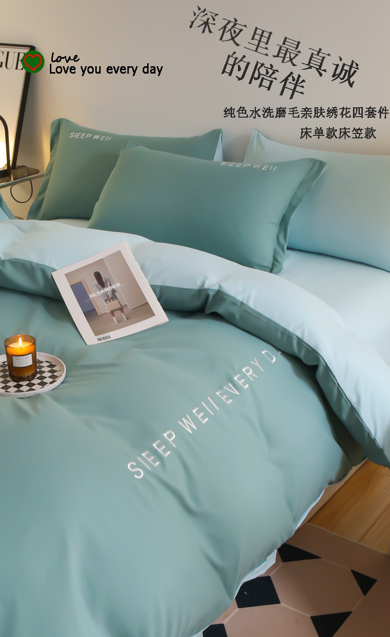 当前位置: 91家纺网 > 商品网购 > 床品套件 > 四件套 > 普通磨毛四件套 > 啊雅家居 新款纯色水洗磨毛亲肤绣花床单款床笠款四套件 奶石兰加奶星蓝