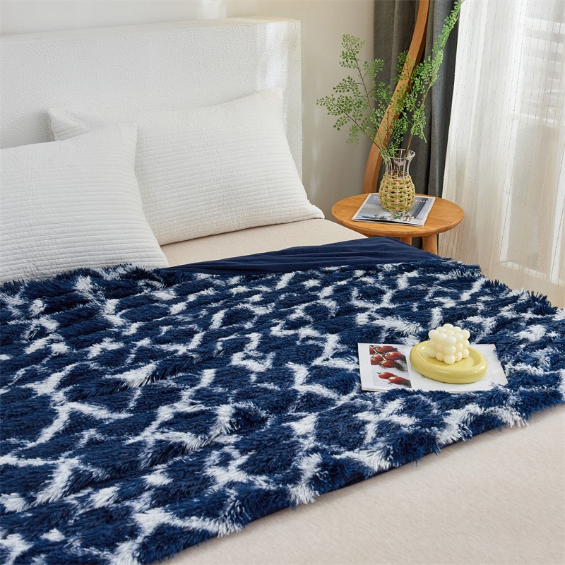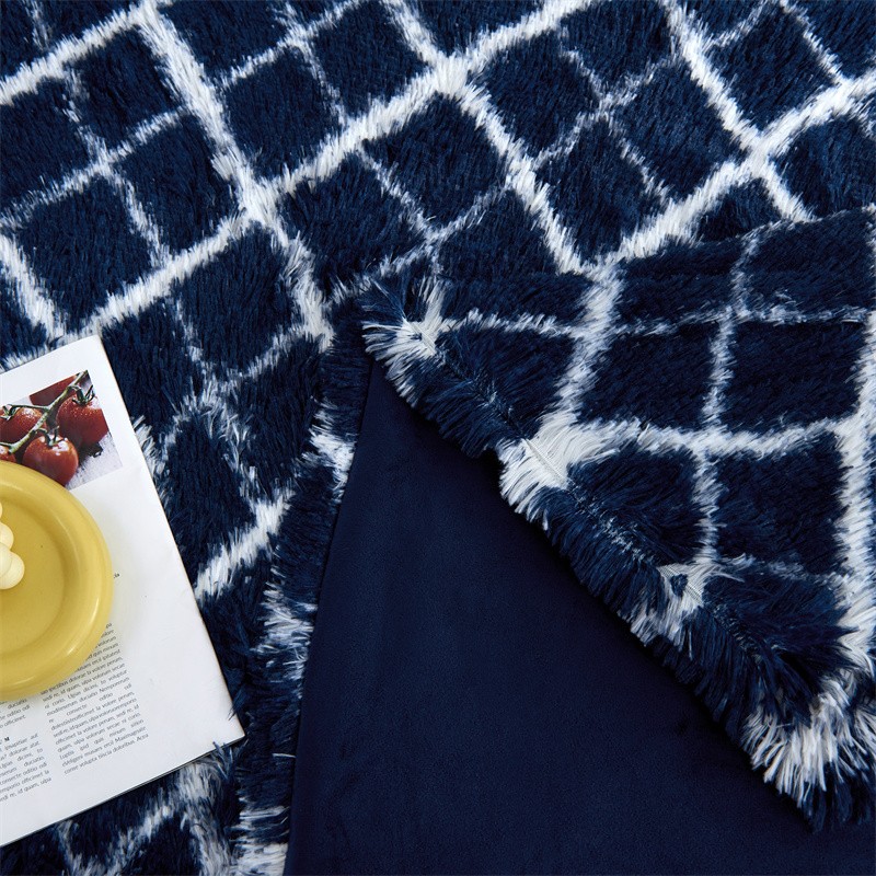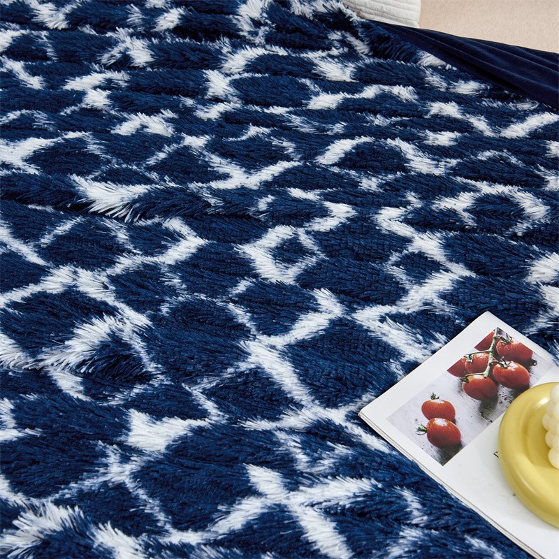 商品名称:品尚嘉水貂绒毛毯长毛绒法莱绒双层跨境外贸毯子-扎染系藏青格子