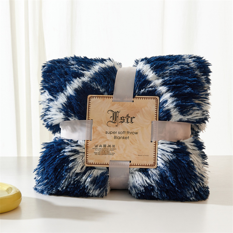 品尚嘉水貂绒毛毯长毛绒法莱绒双层跨境外贸毯子-扎染系藏青格子