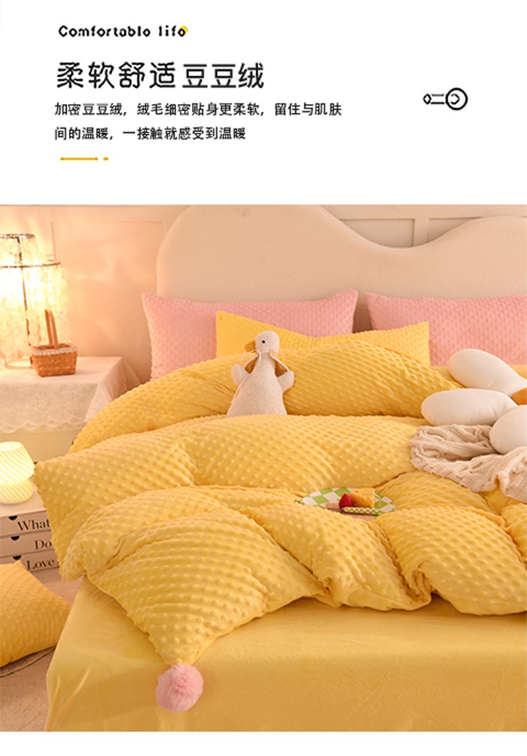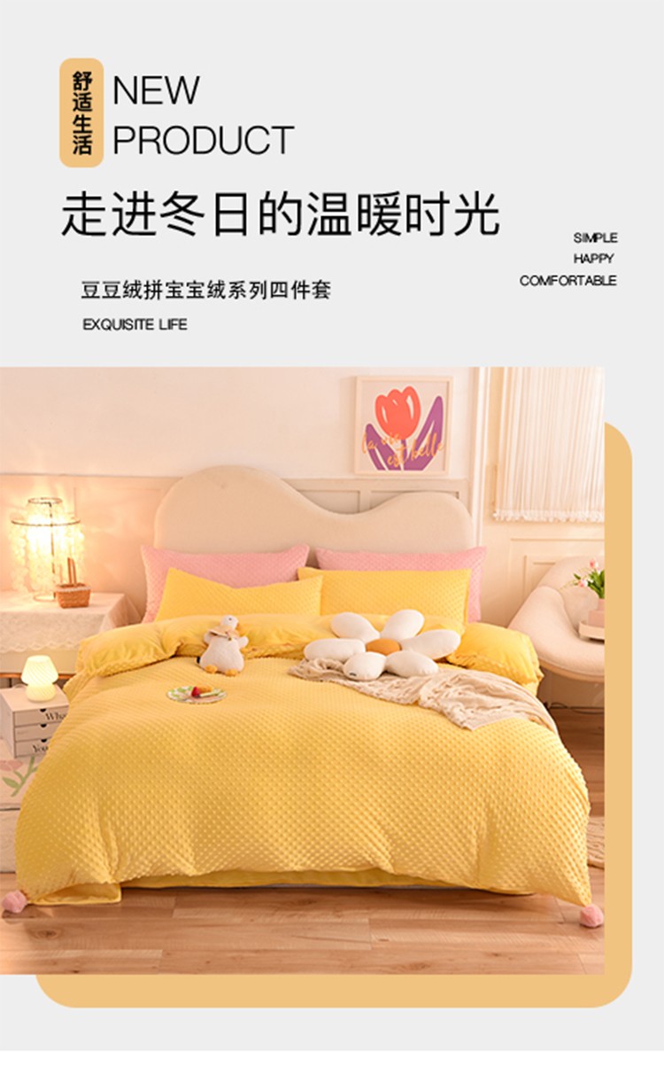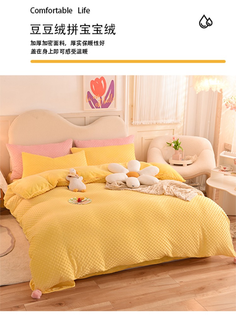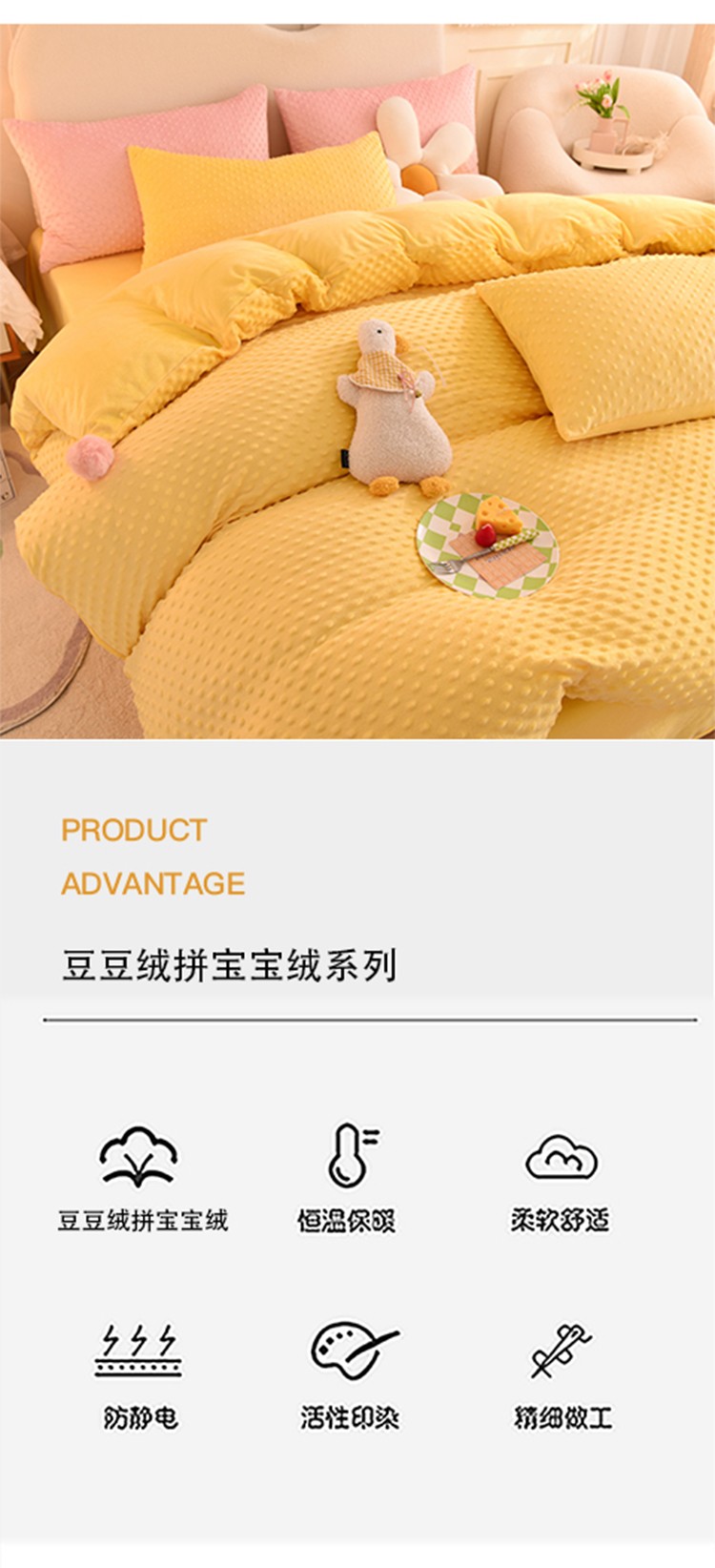 商品名称:艾米家居 2022新款秋冬豆豆绒宝宝绒四件套 黄