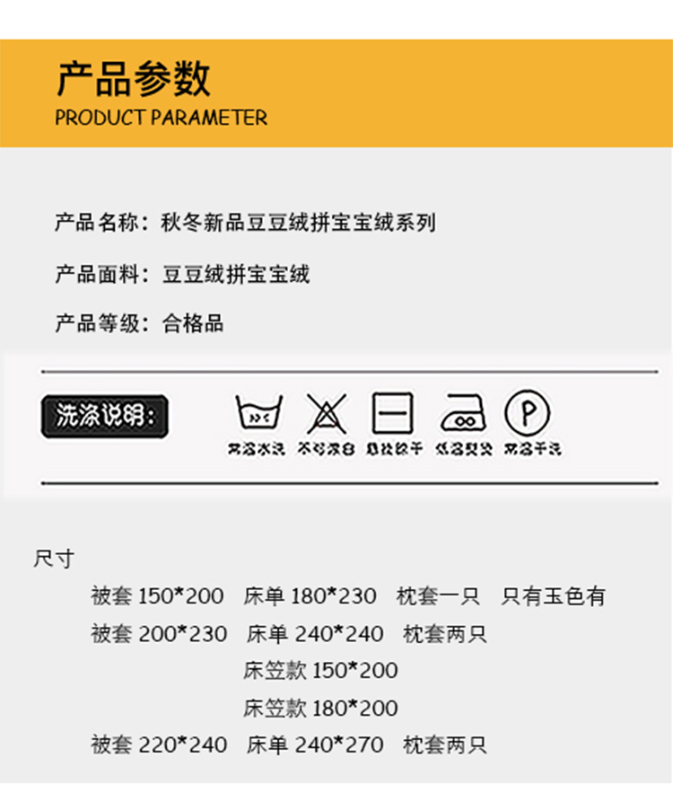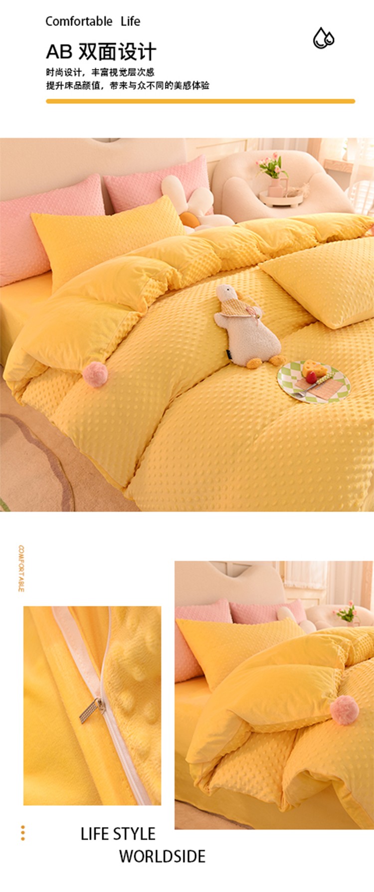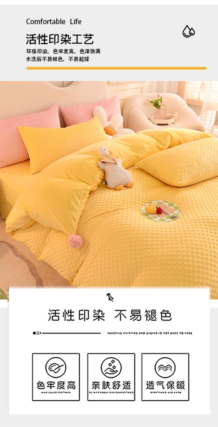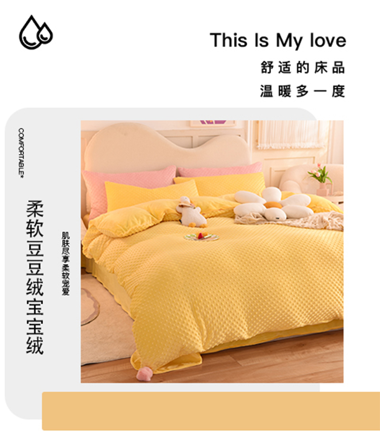 商品名称:艾米家居 2022新款秋冬豆豆绒宝宝绒四件套 黄
