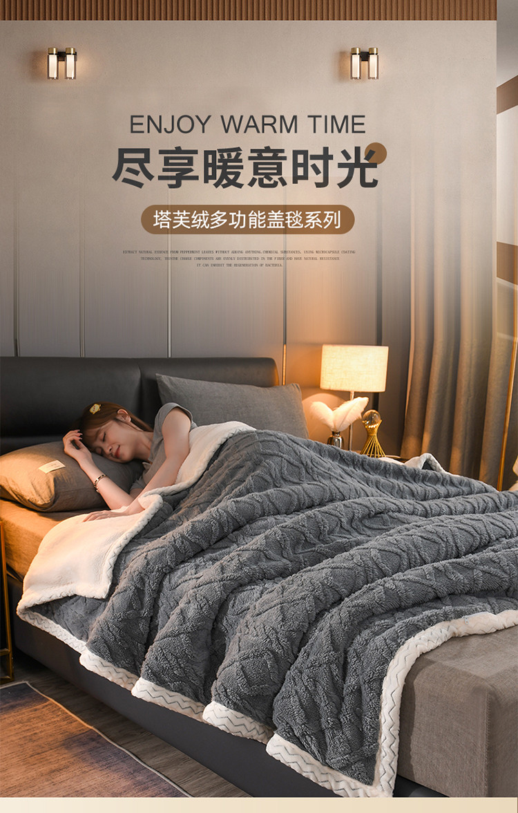 (总)迷仙巢 2022新款塔夫绒多功能盖毯,卡其色,米白色,抹茶绿,柠檬黄,深空灰,香芋紫,樱花粉