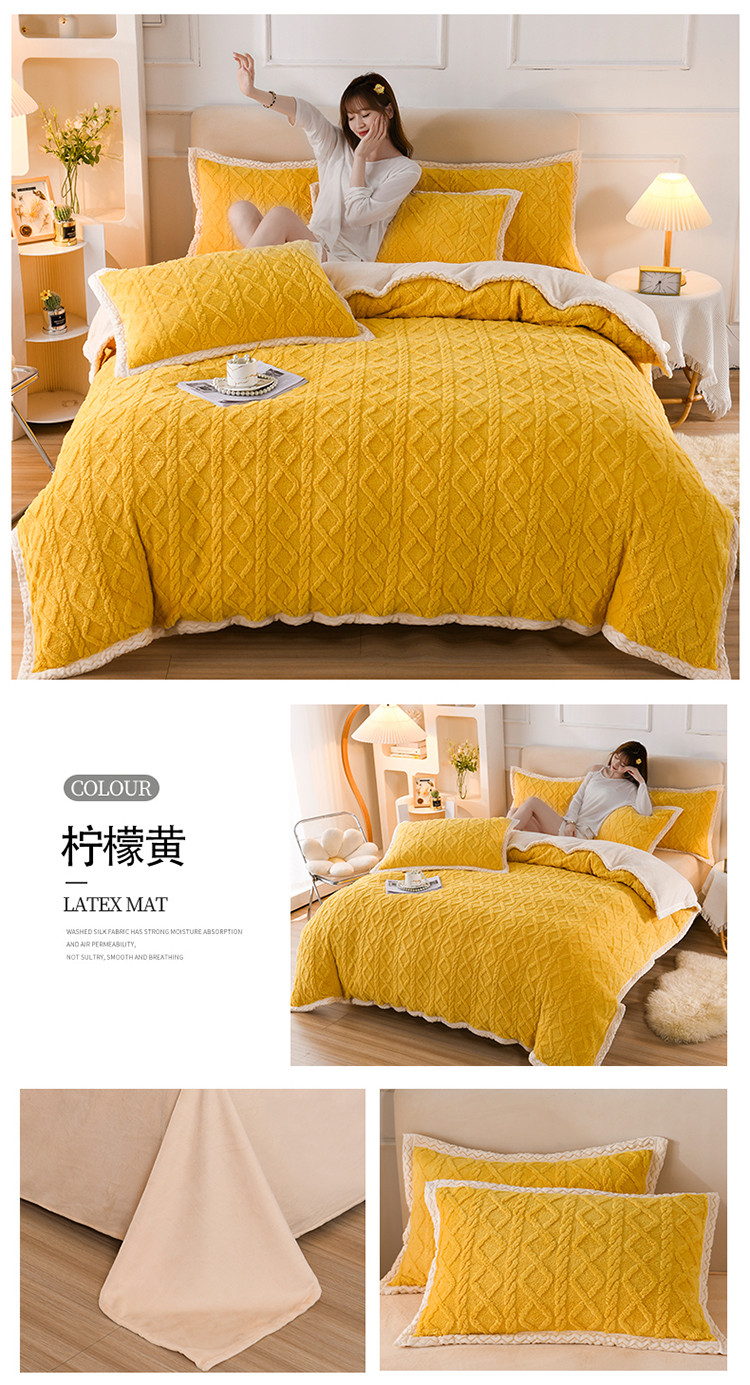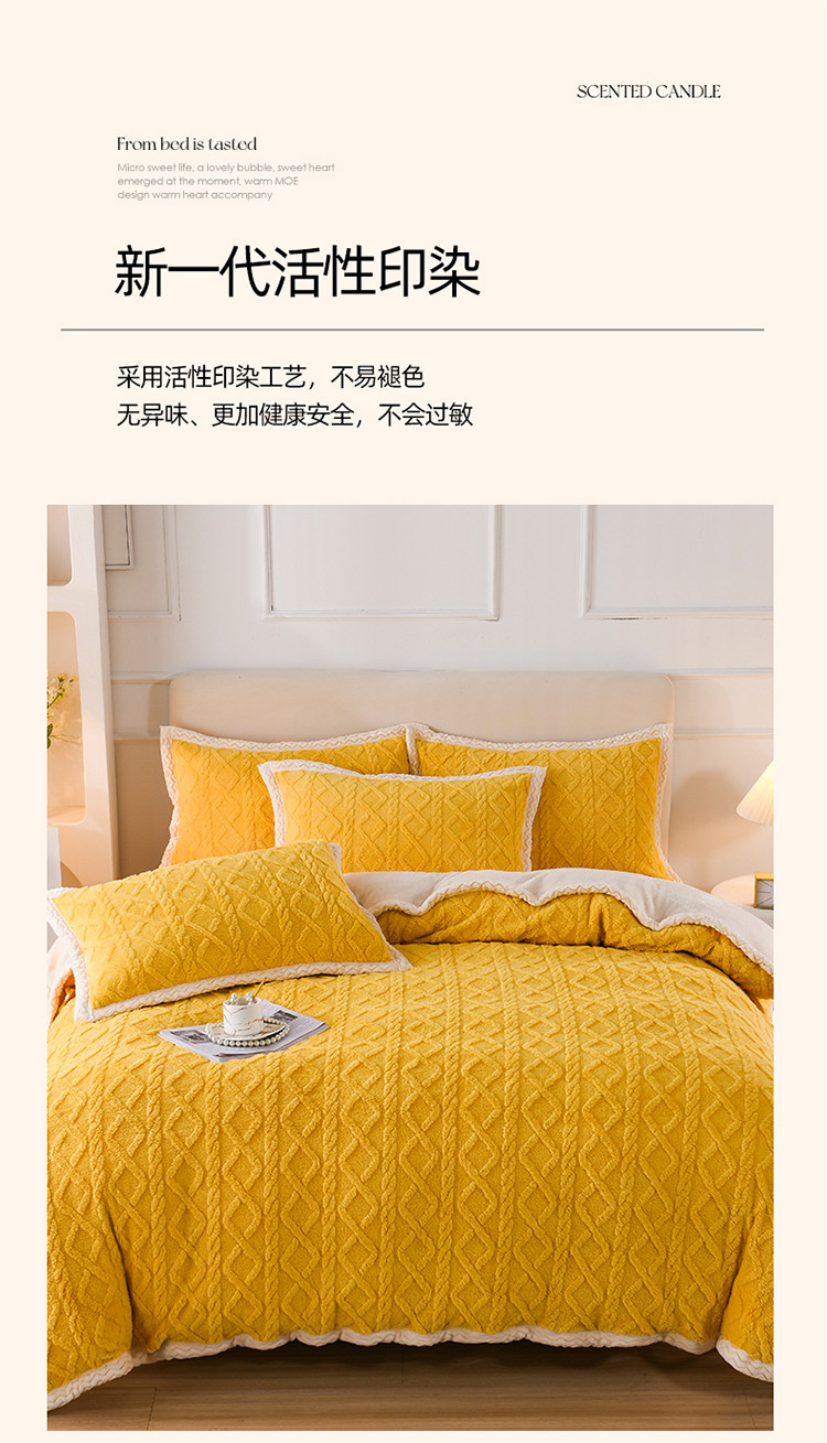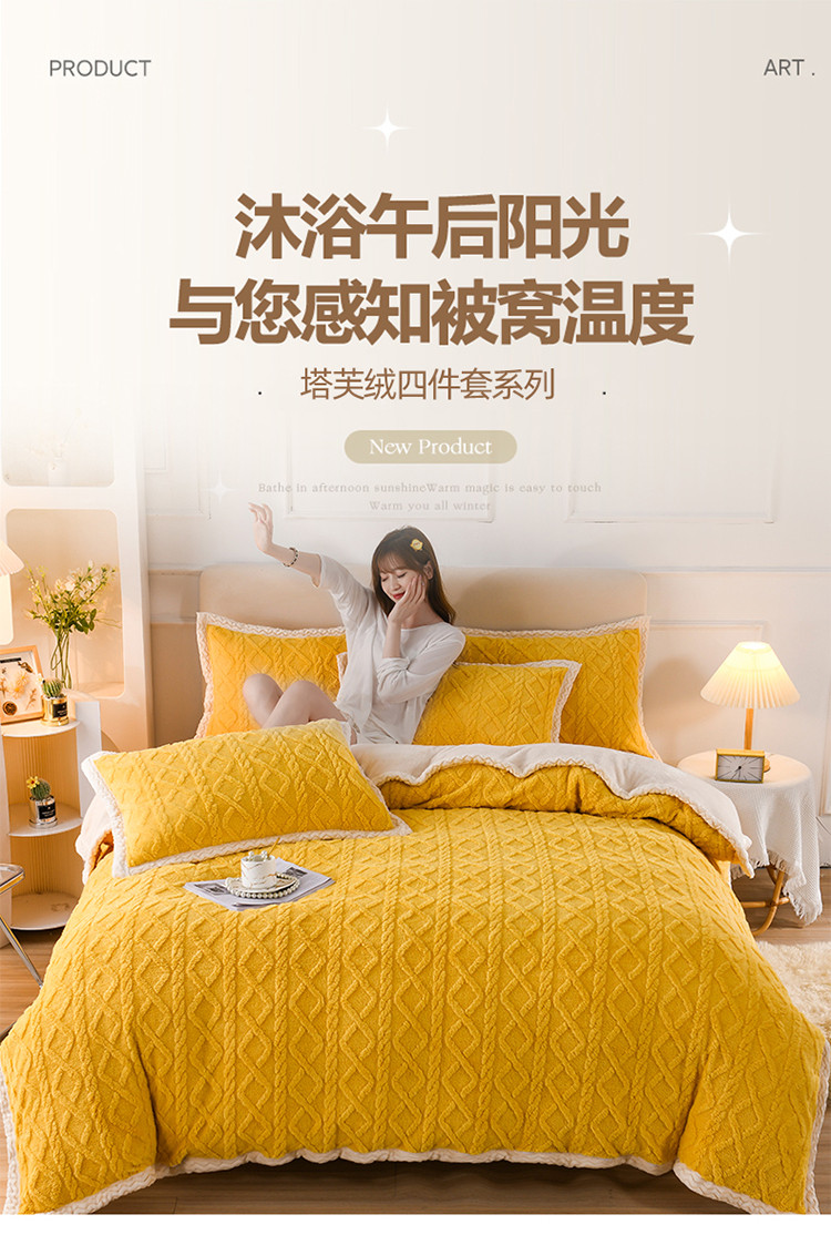 当前位置: 91家纺网 > 商品网购 > 床品套件 > 四件套 > 贝贝绒四件套 > 迷仙巢 2022新款塔夫绒拼北极绒贝贝绒包边四件套 柠檬黄