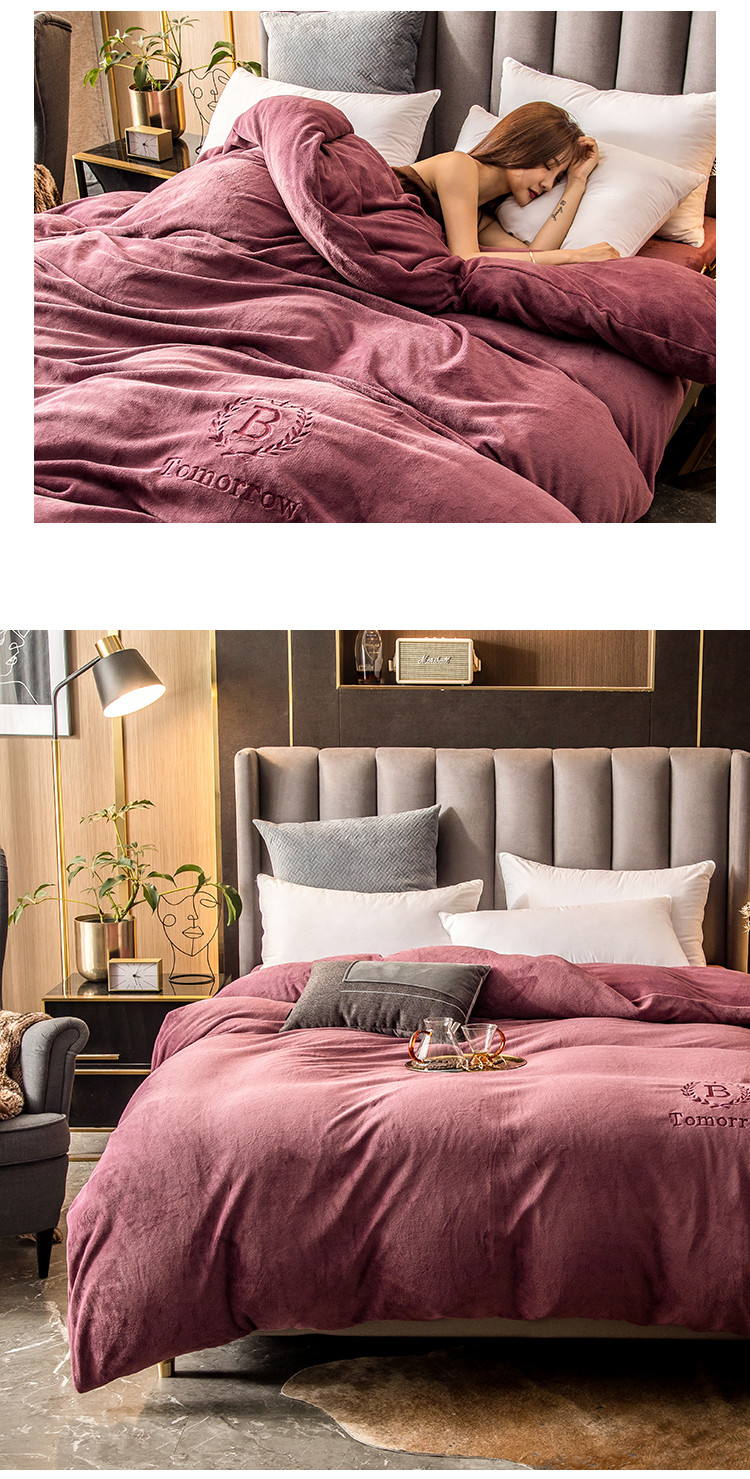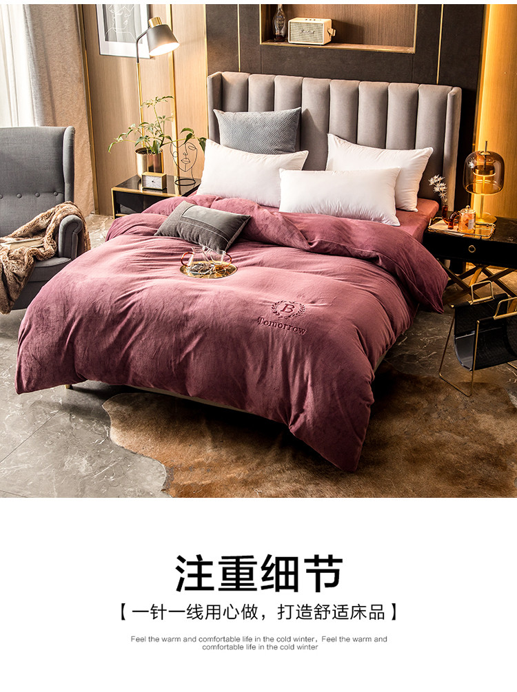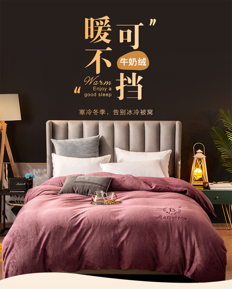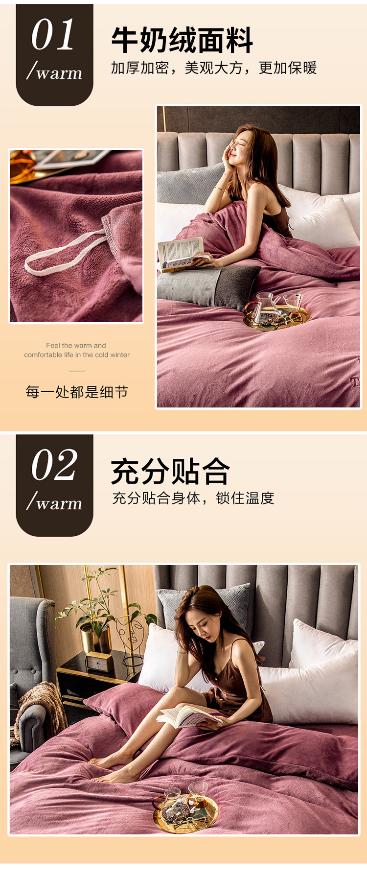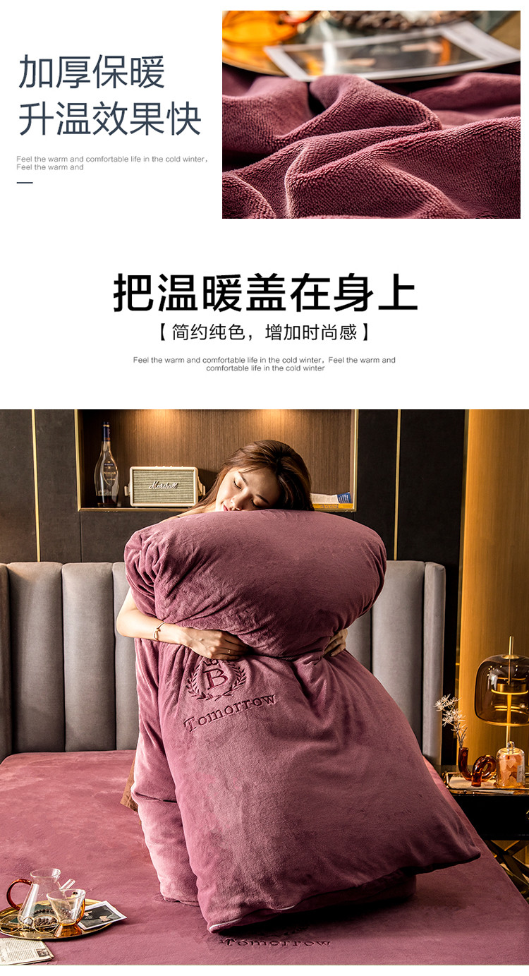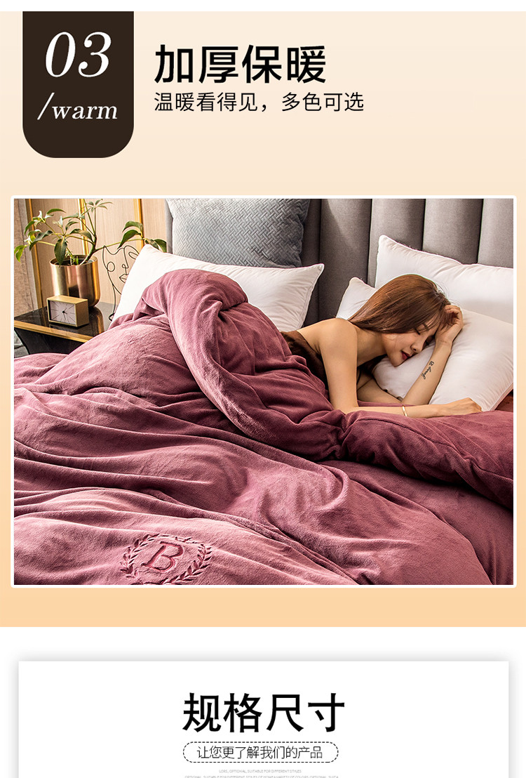 商品名称:丽美人 2022新款加厚保暖纯色简约牛奶绒系列单品被套 海棠红