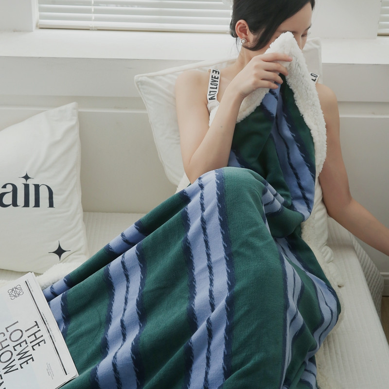 (总)圆岛家纺 2024新款四季款高品质多功能针织半边绒毛毯,圣诞派对