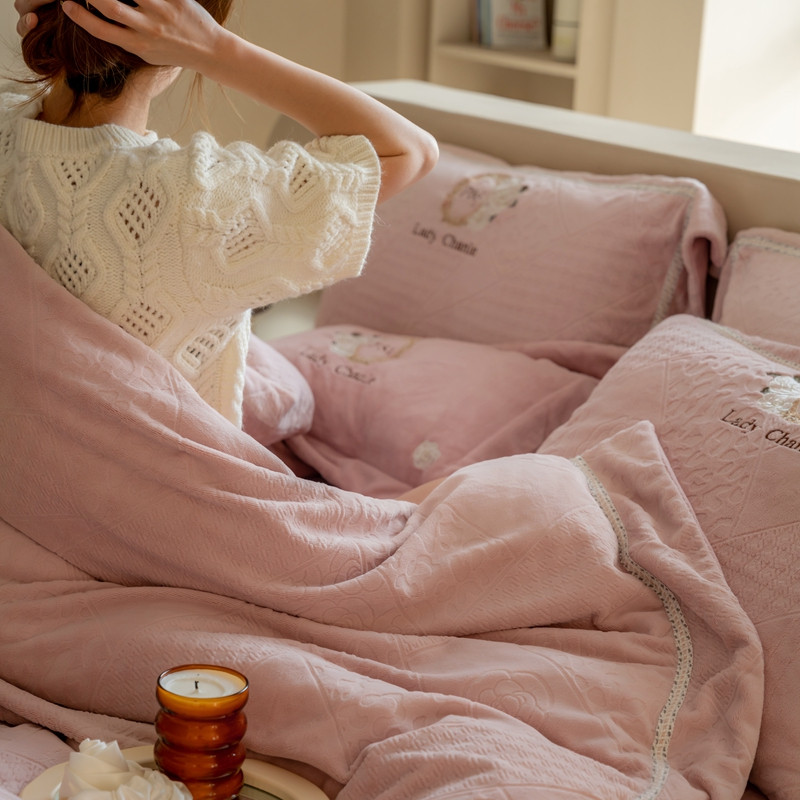 商品名称:馨蕊 新款秋冬轻奢刺绣煦暖绒四件套-莫奈 (图二) 莫奈-蔷薇粉