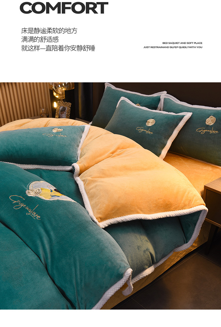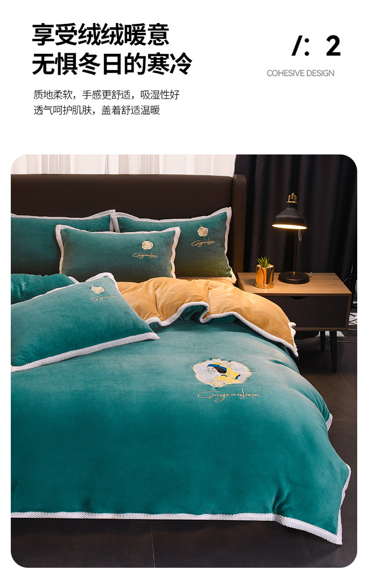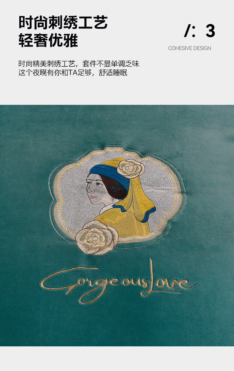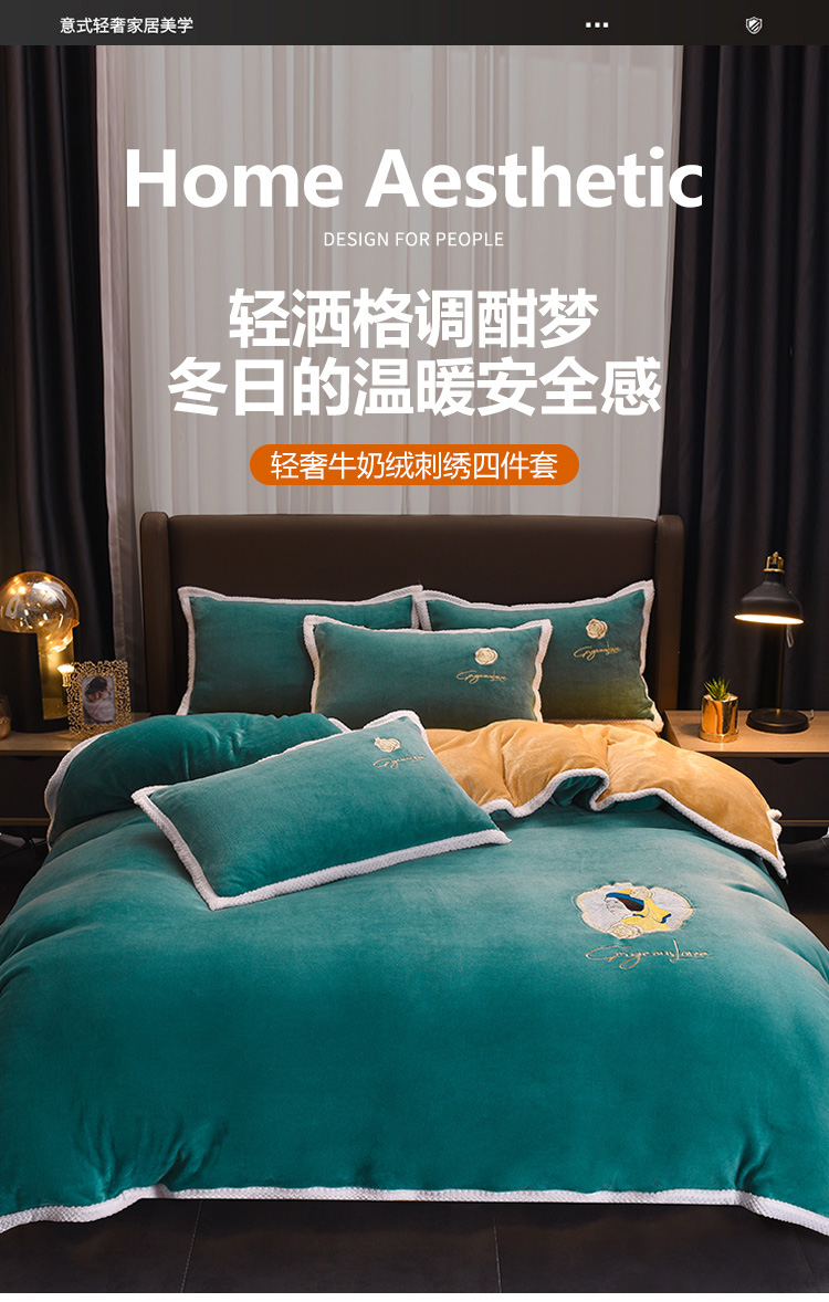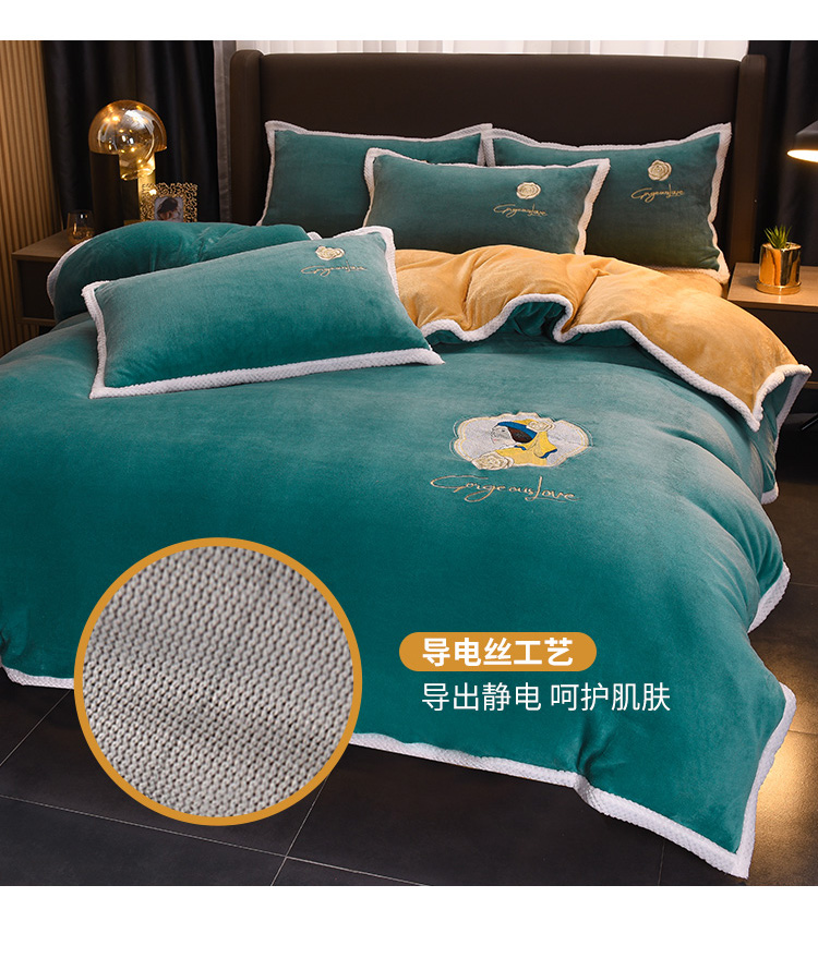商品名称:芃成 2022新款牛奶绒刺绣包边四件套 珍珠女孩玛瑙绿