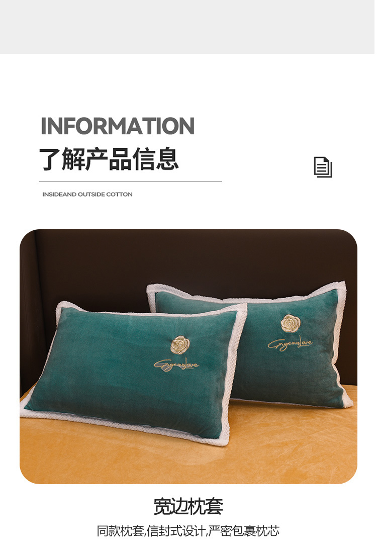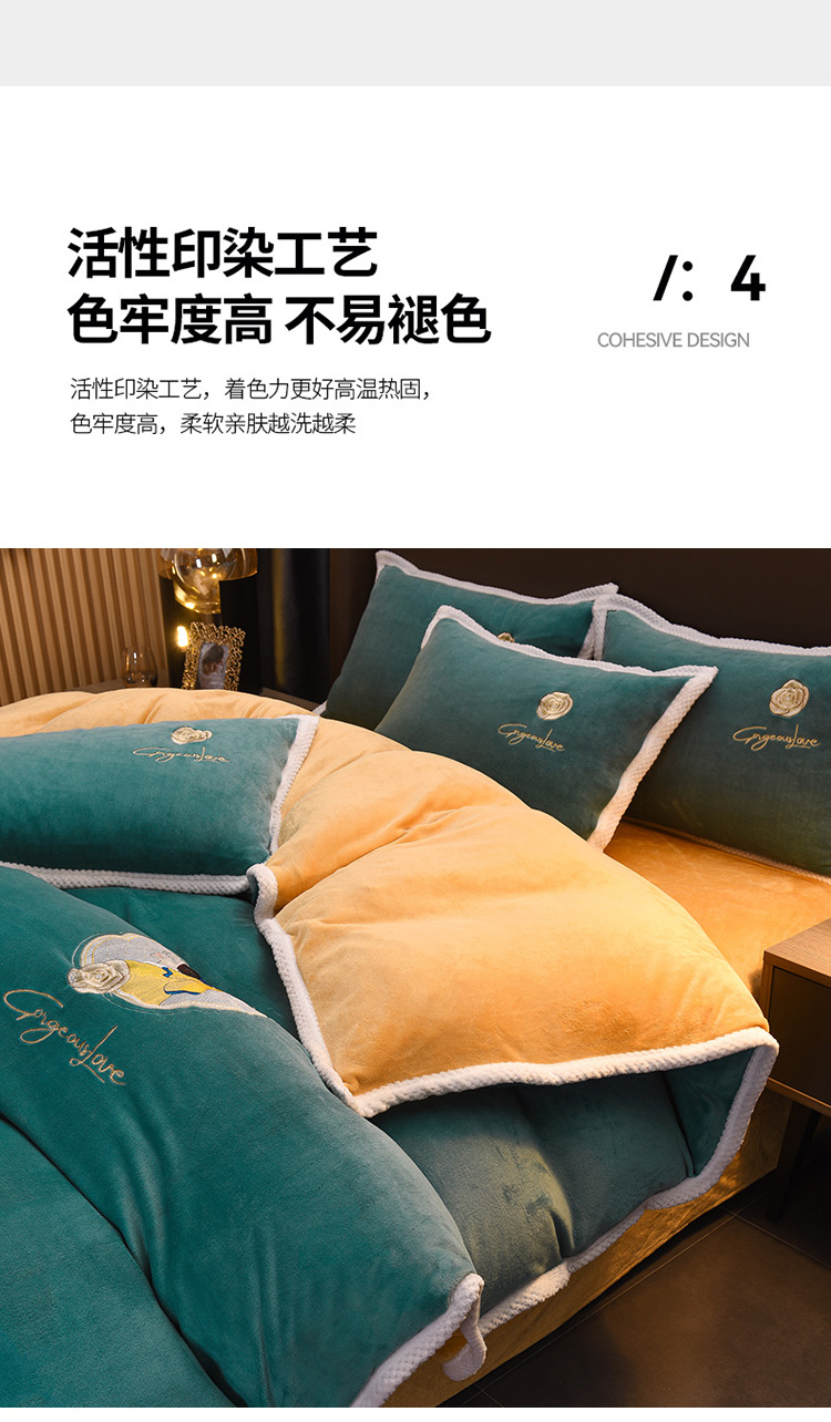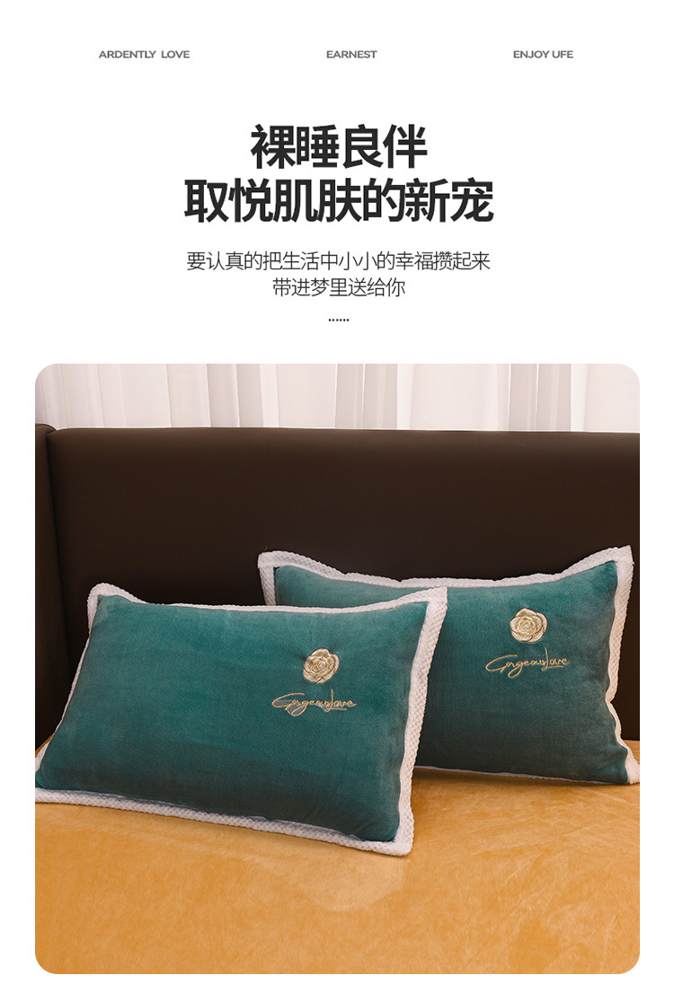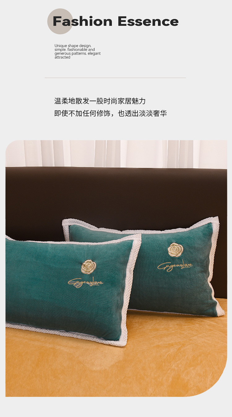 商品名称:芃成 2022新款牛奶绒刺绣包边四件套 珍珠女孩玛瑙绿