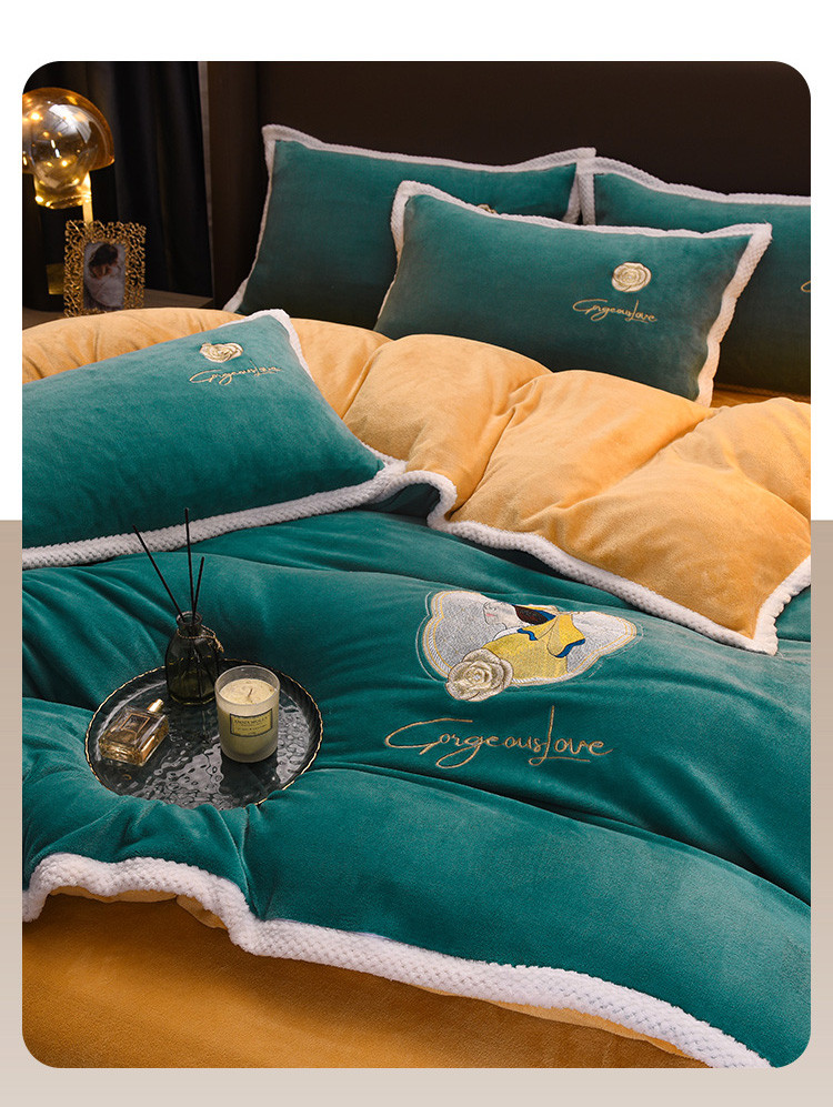 芃成 2022新款牛奶绒刺绣包边四件套 珍珠女孩玛瑙绿