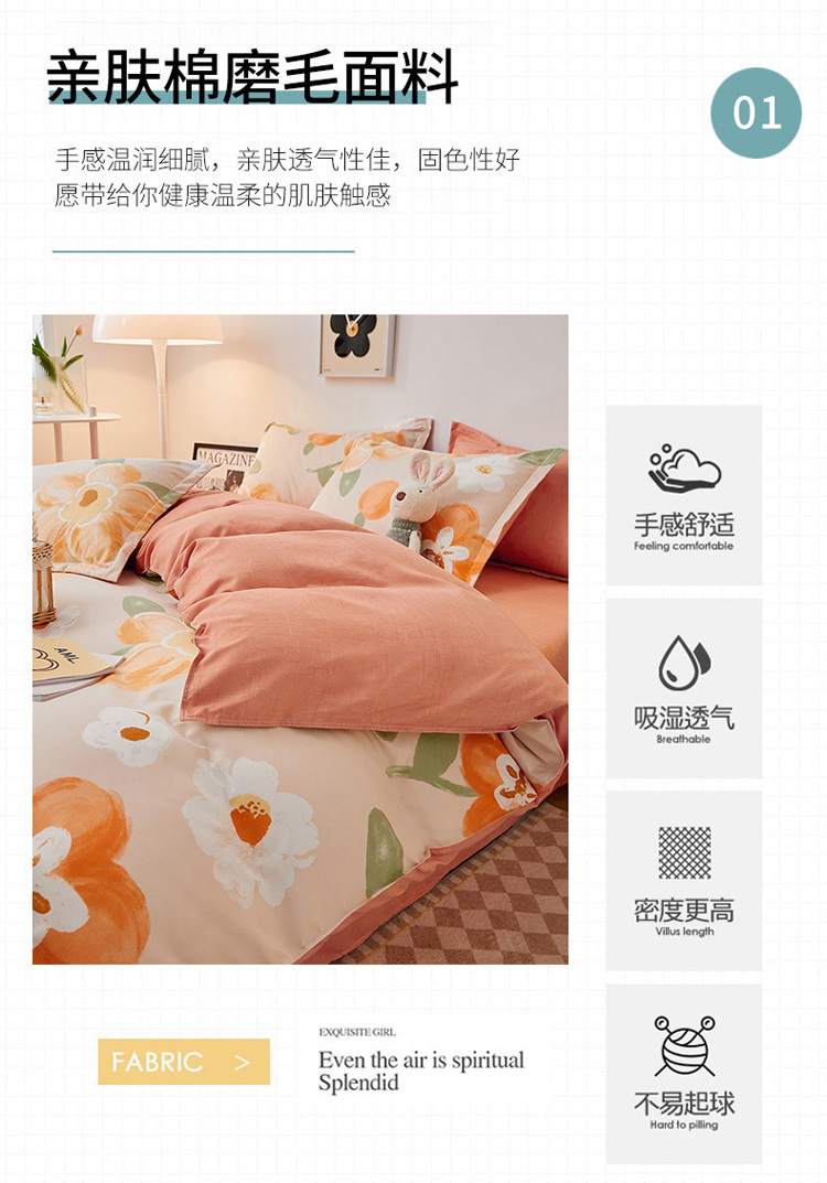 商品名称:世爵 2023新款加厚磨毛印花四件套 暖阳花开