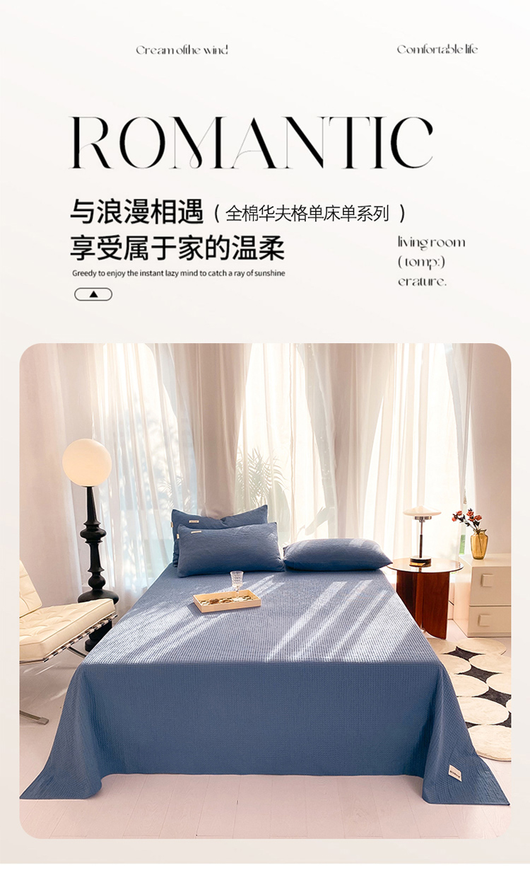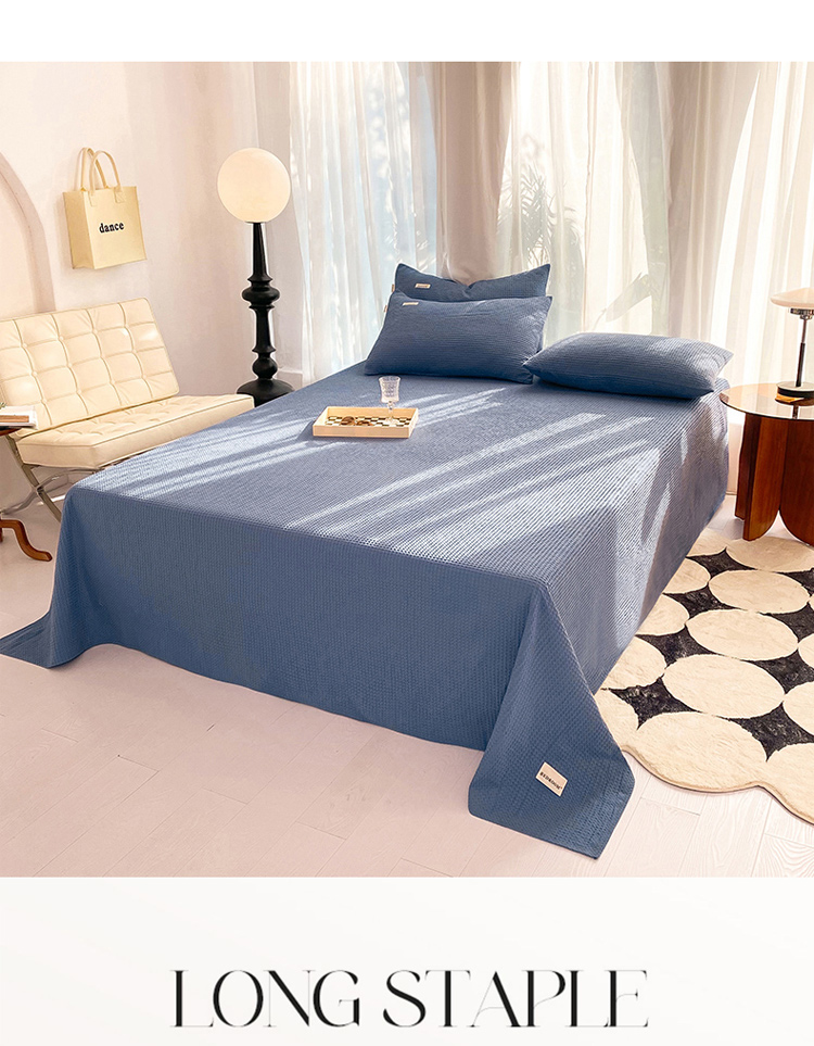 • 91家纺网 家纺一手货源 找家纺 眠博士 2023新款全棉华夫格床单三件套 天蓝