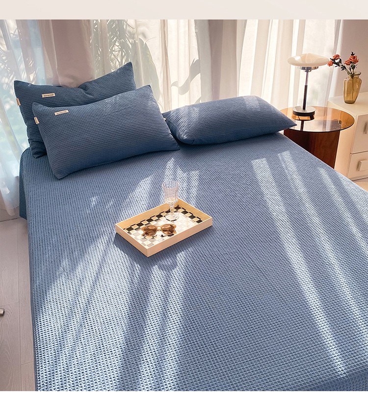 眠博士 2023新款全棉华夫格床单三件套 天蓝