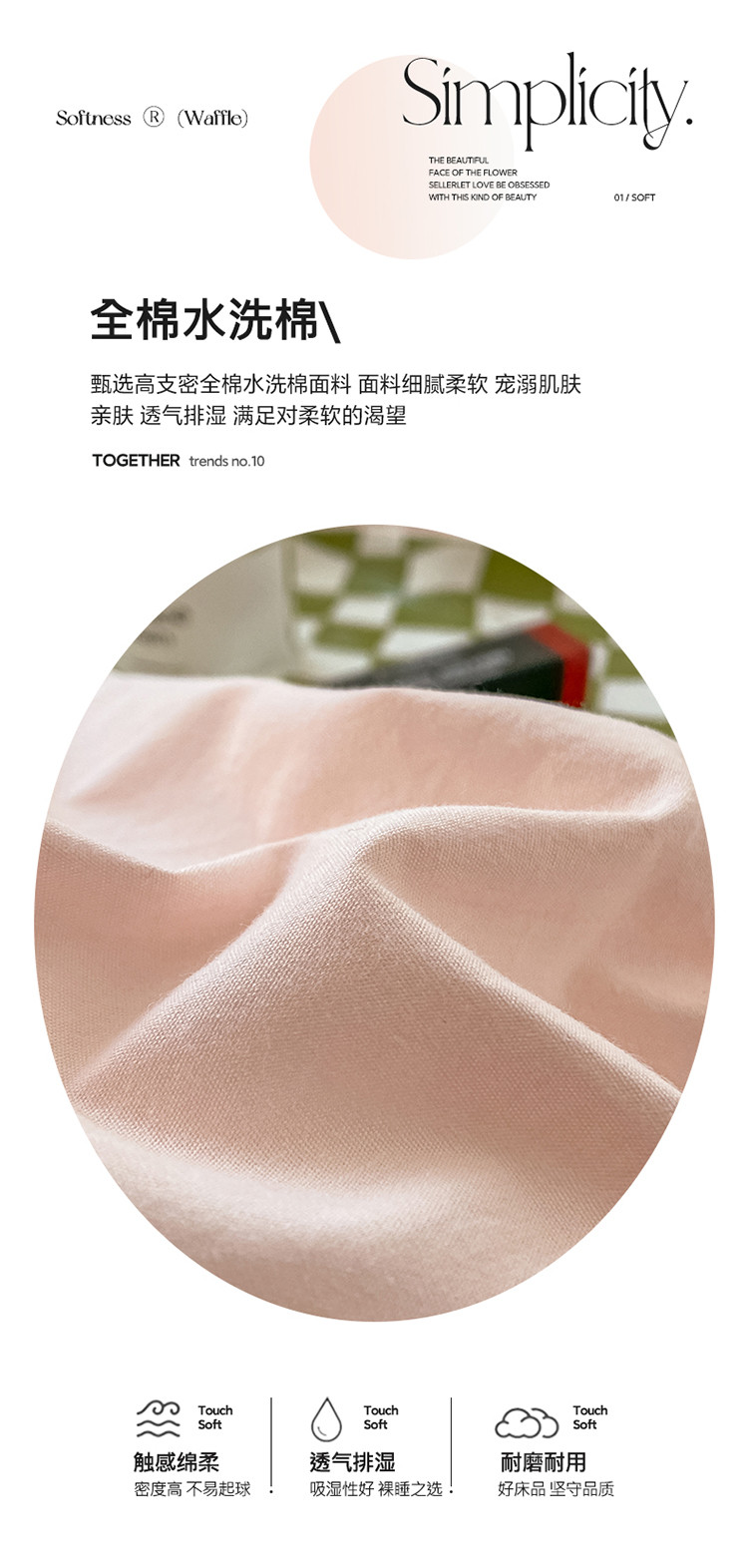 商品名称:(总)泽西 2023新款40支双拼全棉水洗棉纯棉床单床笠床上用品四件套