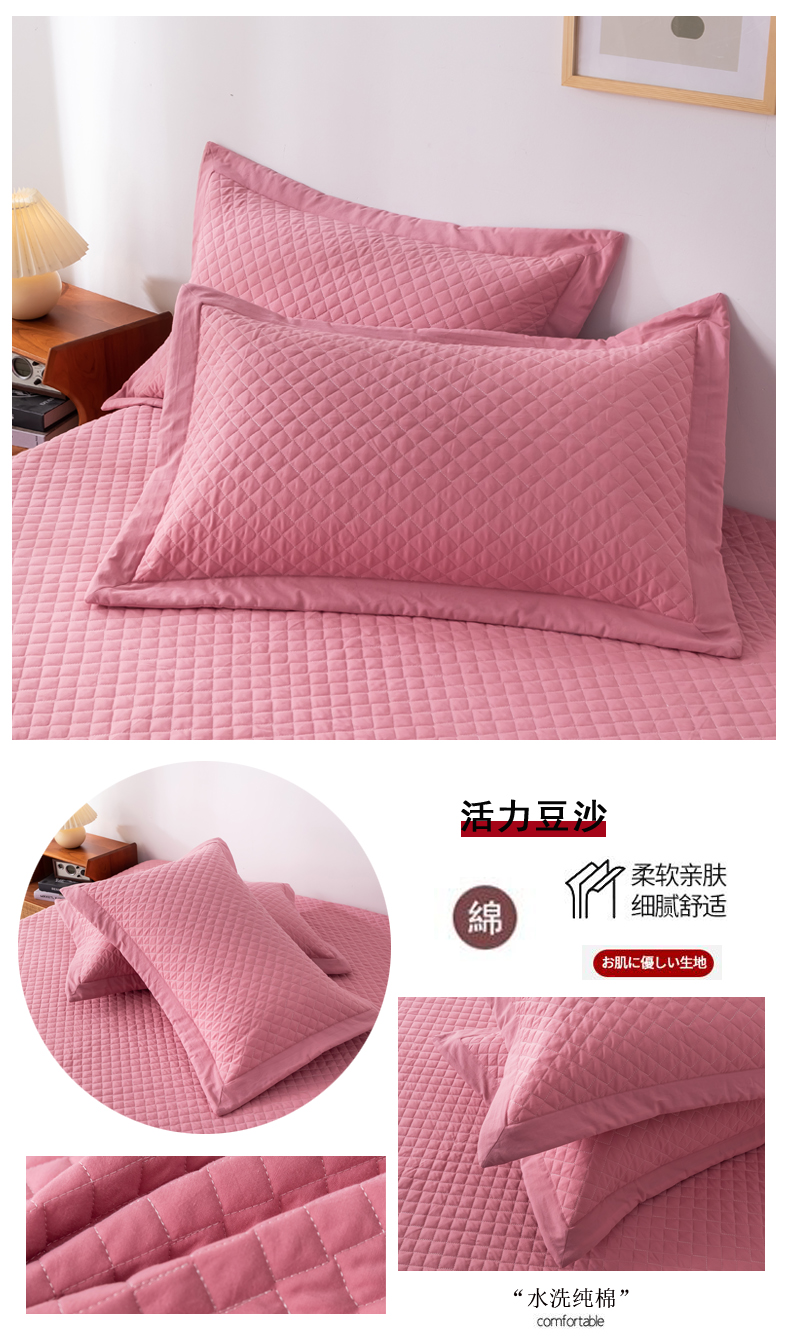 商品名称:优乐家纺 2025新款全棉枕套水洗纯棉夹棉绗缝加厚枕芯罩活力豆沙