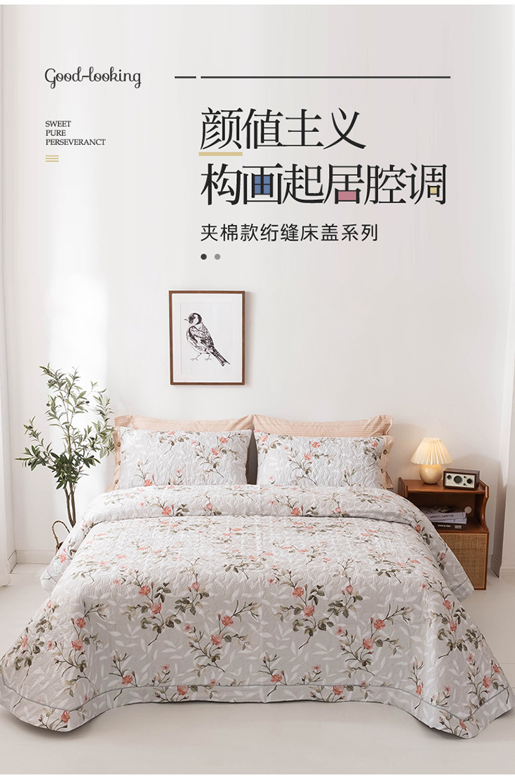 优乐家纺 2023新款全棉印花绗绣单床盖 挪威仙草