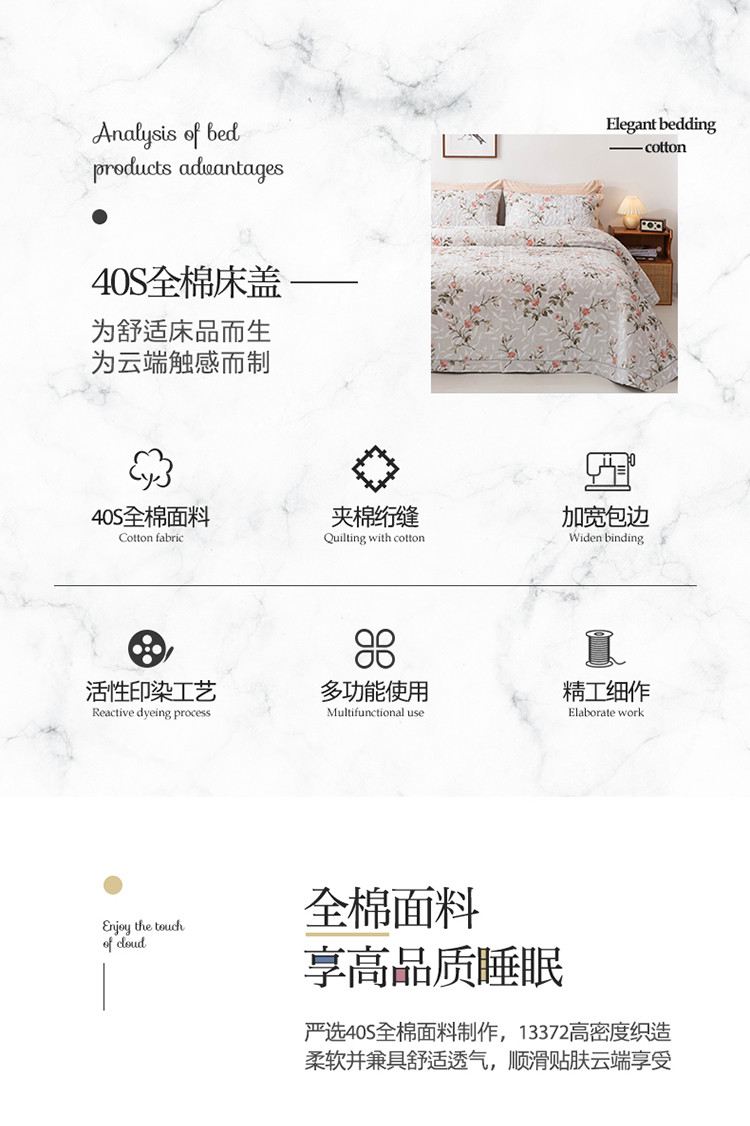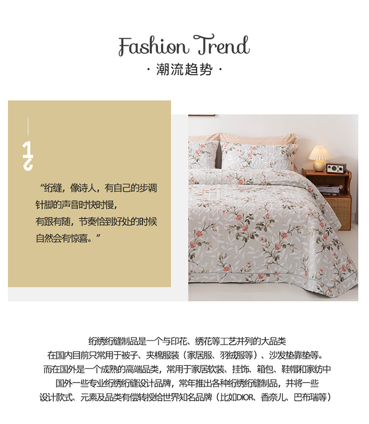 商品名称:优乐家纺 2023新款全棉印花绗绣单床盖 挪威仙草