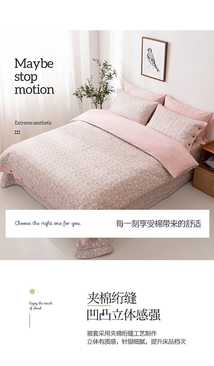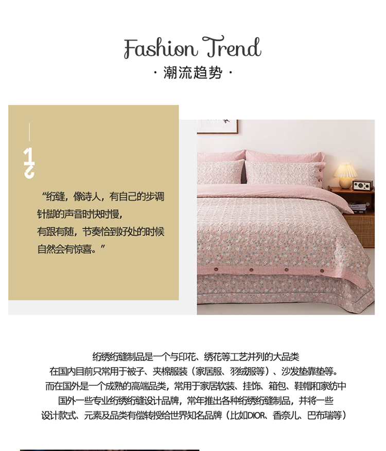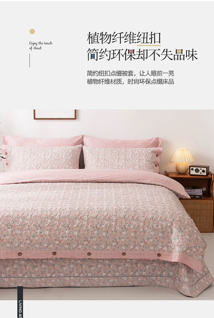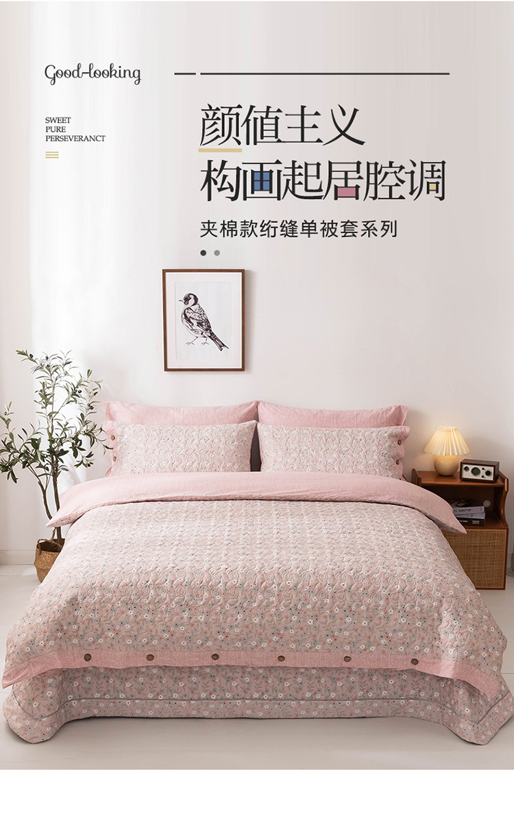 • 91家纺网 家纺一手货源 找家纺 优乐家纺 2023新款全棉印花绗绣单被套 花语