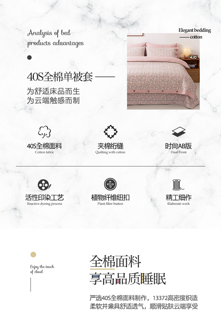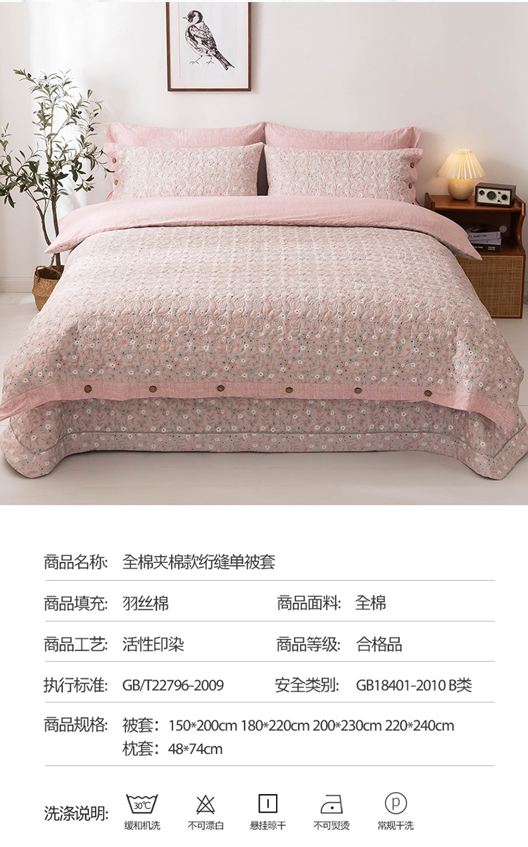 当前位置: 91家纺网 > 商品网购 > 床上用品 > 被套 > 优乐家纺 2023新款全棉印花绗绣单被套 花语