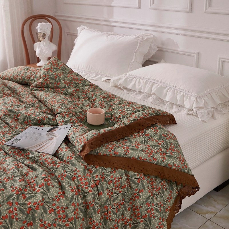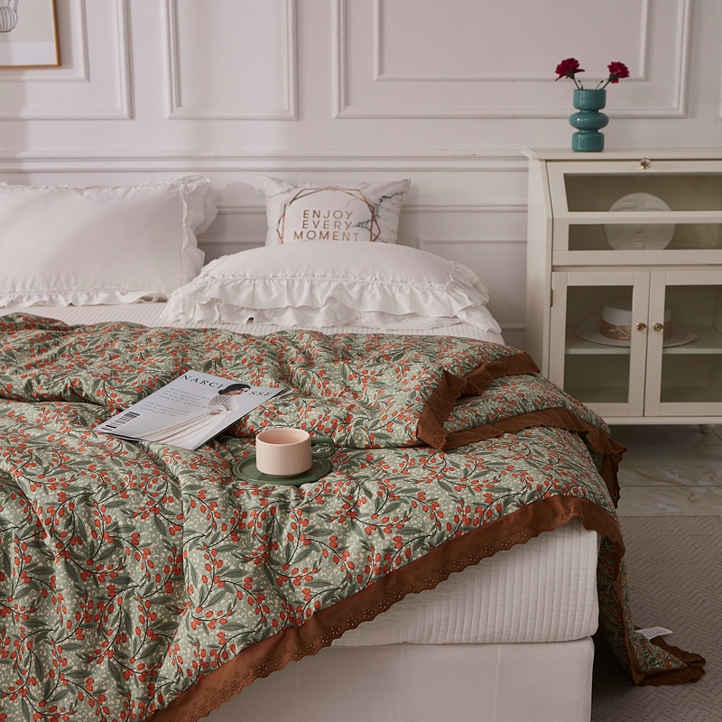 上喜 热卖全棉水洗棉印花花边一体被 秘密花园