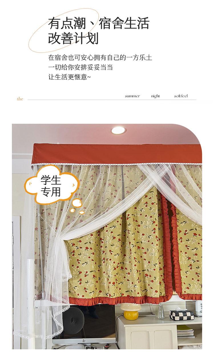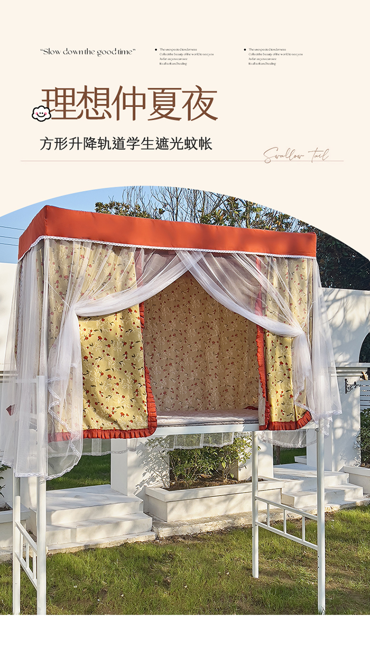 商品名称:新太阳 2025新款方形升降轨道学生遮光床帘蚊帐 绿野