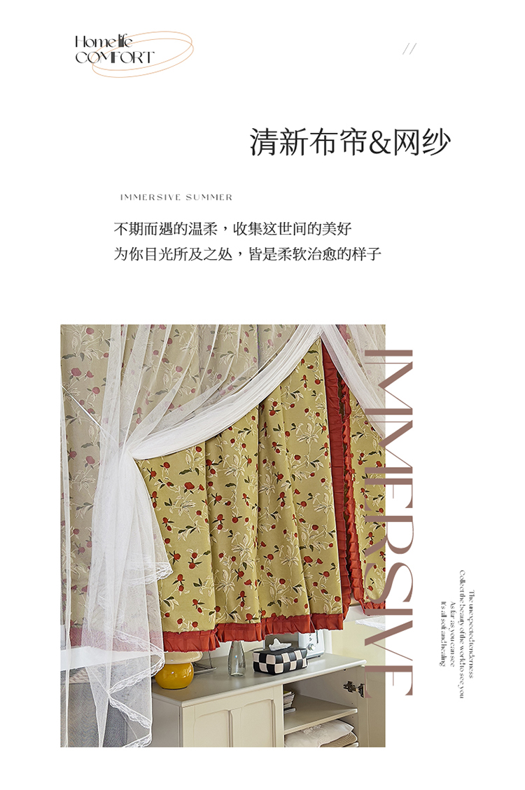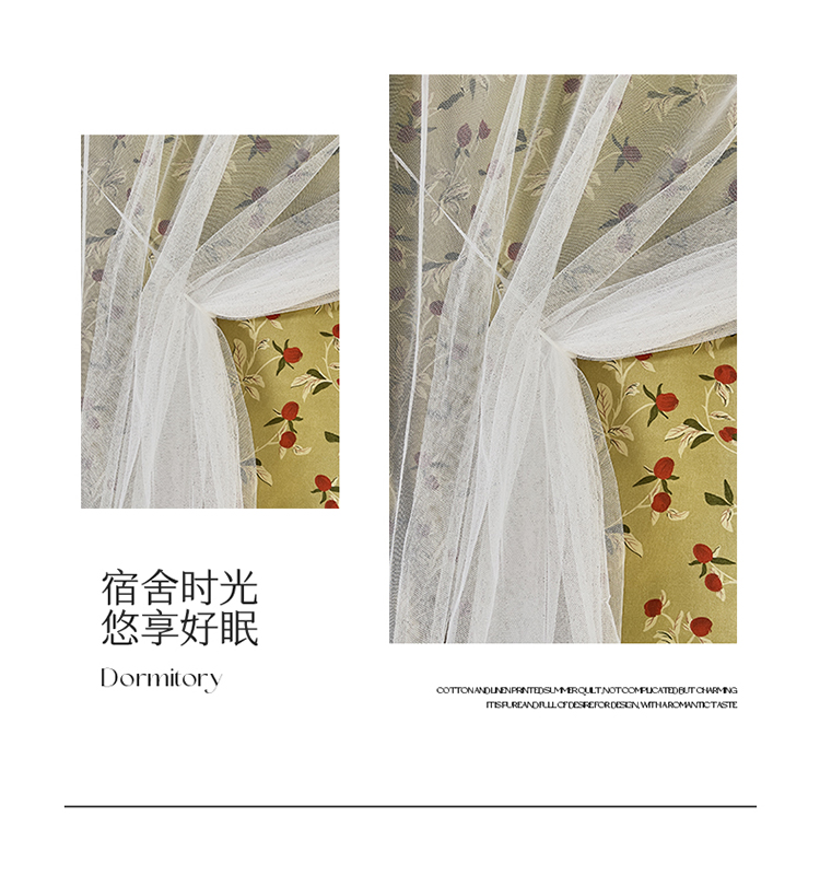 (总)新太阳 2022新款碎花学生床帘蚊帐,繁花似锦-粉玉,繁花似锦-柠檬黄